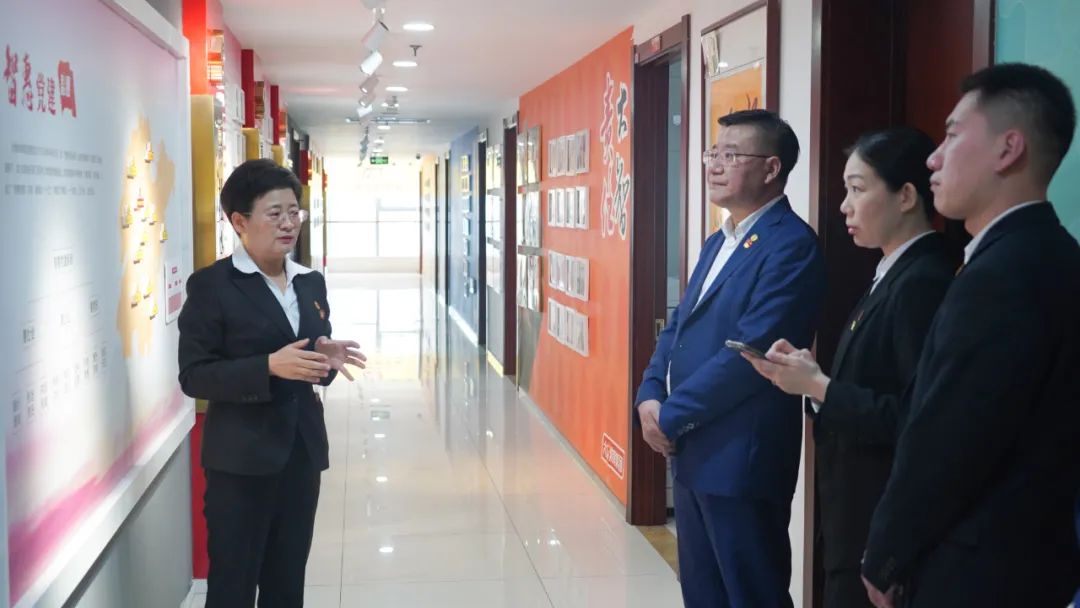 王現(xiàn)芹帶領(lǐng)大家參觀了黨建長廊,詳細(xì)介紹了大智組織架構(gòu)、企業(yè)文化等相關(guān)情況,以及“智惠黨建一三九”黨建工作模式,黨建引領(lǐng)下的“一帶一促”群團(tuán)建設(shè)理念和“智惠+”群團(tuán)建設(shè)模式,大家對大智的黨建工作給予了充分肯定和高度認(rèn)可。