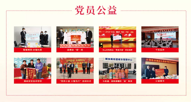 多年來,在上級(jí)主管部門領(lǐng)導(dǎo)下,大智教育集團(tuán)積極踐行社會(huì)責(zé)任,把公益基因植入企業(yè)發(fā)展之中,啟動(dòng)了“黨員公益 大智先行”“千校巡講”“大智之星”齊魯學(xué)子獎(jiǎng)學(xué)金評(píng)選等公益項(xiàng)目,建立了“智學(xué)智愛”志愿服務(wù)隊(duì),積極參與到全國文明城市創(chuàng)建、泉城義工、抗疫援助等活動(dòng)中來,形成了“智惠e”公益品牌。