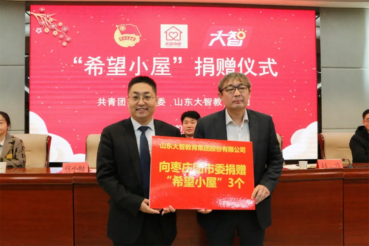 在活動(dòng)現(xiàn)場(chǎng),大智控股集團(tuán)向共青團(tuán)棗莊市委捐建“希望小屋”3個(gè)。