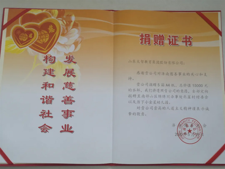 捐贈儀式上,大智濟南區(qū)域為南部山區(qū)少年兒童捐贈5箱A4紙、總價值15000元水杯,這不僅僅是一個溫暖的數(shù)字,更是一份強大的力量。