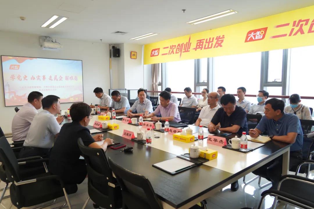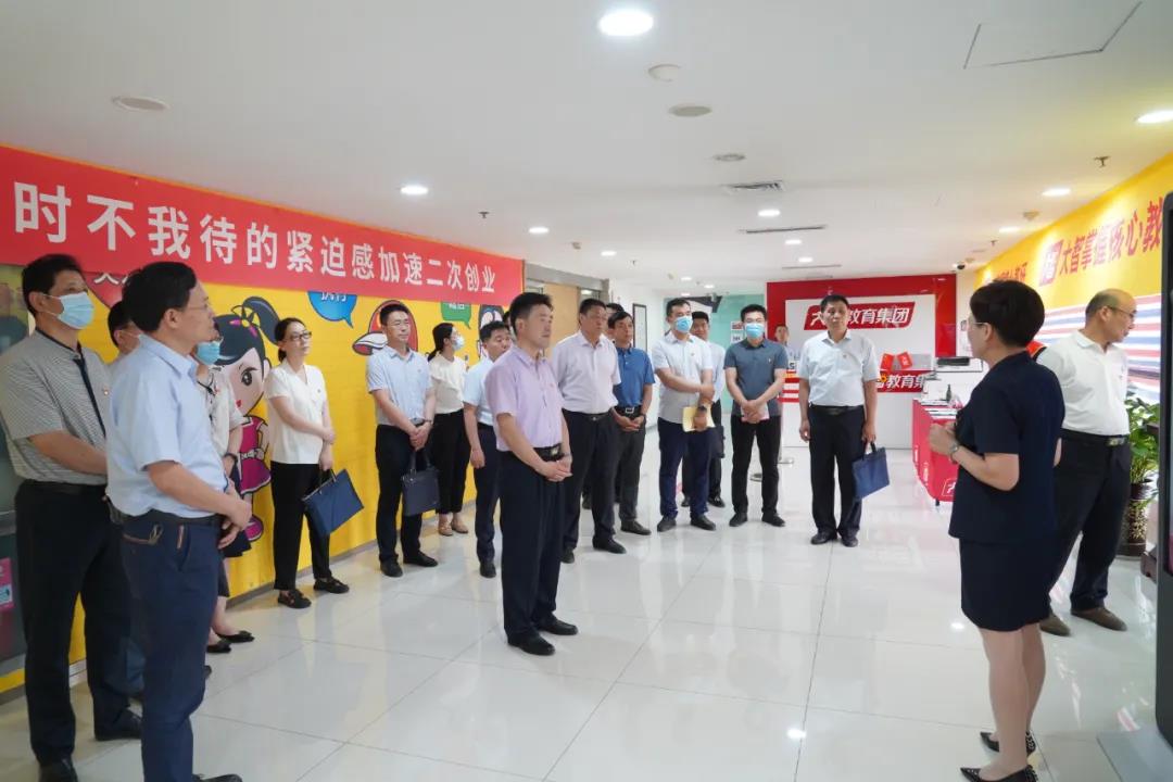 6月23日,山東省市場(chǎng)監(jiān)督管理局、濟(jì)南市民營(yíng)企業(yè)高質(zhì)量發(fā)展服務(wù)隊(duì)在大智聯(lián)合開(kāi)展“學(xué)黨史 辦實(shí)事 走民企 解難題”主題黨日。省市場(chǎng)監(jiān)督管理局黨組成員、副局長(zhǎng)郭之祥,省市場(chǎng)監(jiān)督管理局一級(jí)調(diào)研員、個(gè)體私營(yíng)經(jīng)濟(jì)發(fā)展促進(jìn)處處長(zhǎng)孫樂(lè)平,濟(jì)南市民營(yíng)企業(yè)高質(zhì)量發(fā)展服務(wù)隊(duì)總領(lǐng)隊(duì)閆卓然等相關(guān)領(lǐng)導(dǎo)出席活動(dòng)。大智教育集團(tuán)黨委書(shū)記王現(xiàn)芹,董事長(zhǎng)張維東熱情接待。