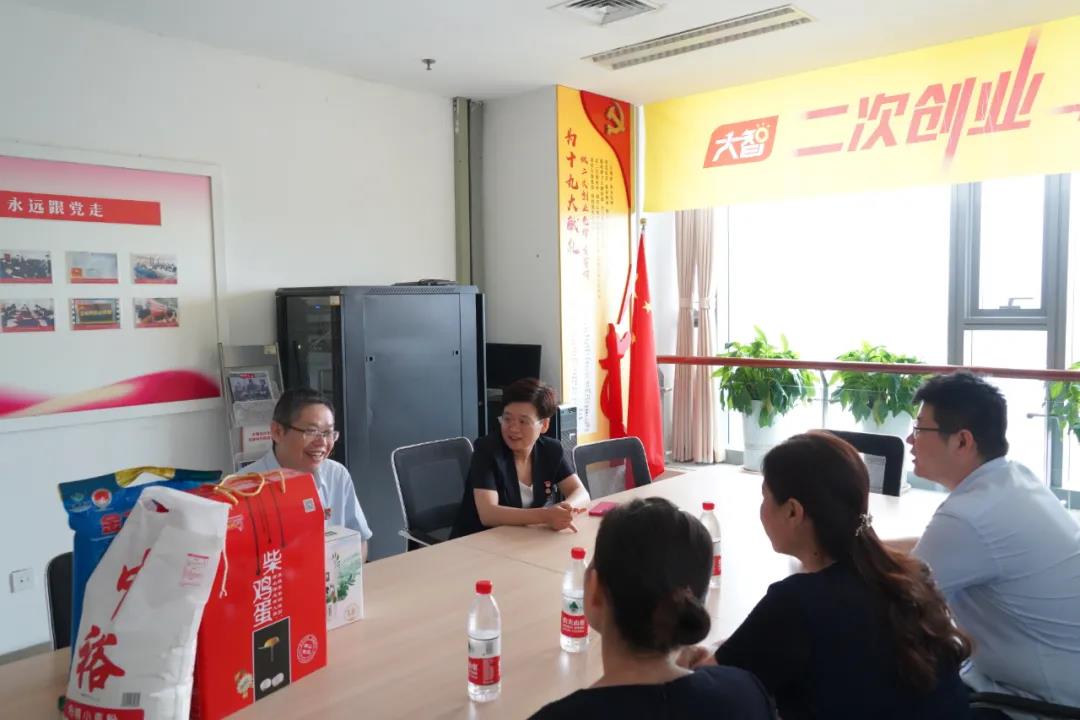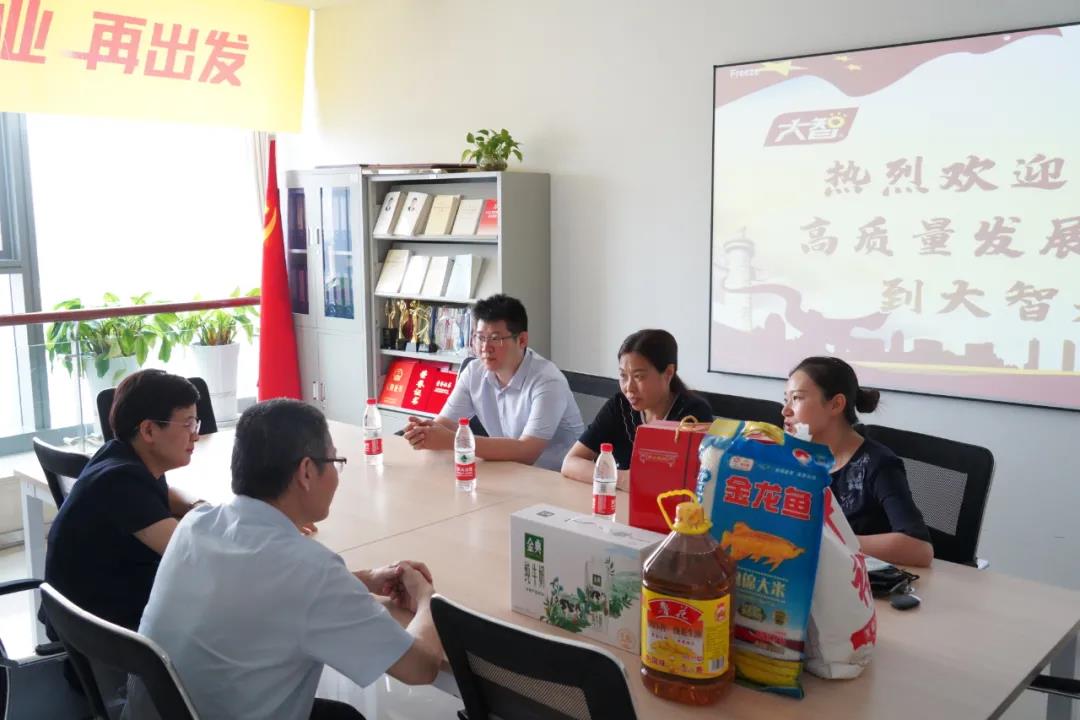 7月1日,濟南市民營企業(yè)高質(zhì)量發(fā)展服務(wù)隊到大智慰問光榮在崗老黨員。大智教育集團黨委書記王現(xiàn)芹熱情接待。