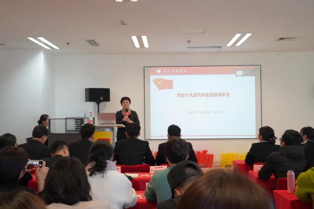 濟(jì)南市歷下區(qū)委黨校吳玉玲老師現(xiàn)場為大家講述了《黨的十九屆六中全會精神學(xué)習(xí)》,通過吳老師深入淺出、生動清晰的講述,大家加深了對十九屆六中全會精神的認(rèn)識,明白了十九屆六中全會的精神實質(zhì)。