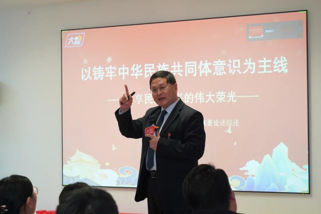 隨后,大智教育集團(tuán)政治研究院院長張善文帶領(lǐng)大家共同學(xué)習(xí)了習(xí)近平總書記關(guān)于民族團(tuán)結(jié)進(jìn)步重要論述綜述《共享民族復(fù)興的偉大榮光》,引發(fā)了與會人員熱烈反響。