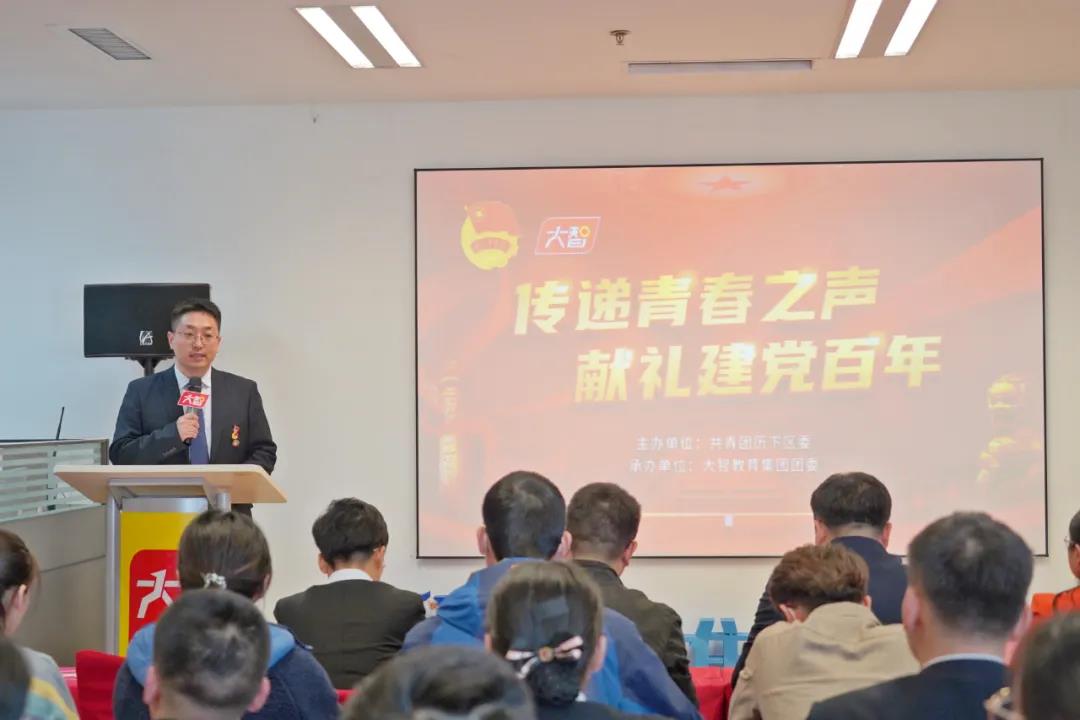 為慶祝中國共產(chǎn)黨成立100周年,共青團歷下區(qū)委聯(lián)合大智教育集團團委共同開展“傳遞青春之聲,獻禮建黨百年”活動,3月23日下午,活動啟動儀式在大智教育集團總部順利舉行,共青團山東省委宣傳部部長王磊,共青團濟南市委副書記孫華,共青團歷下區(qū)委副書記李輝,大智教育集團黨委書記王現(xiàn)芹出席活動。