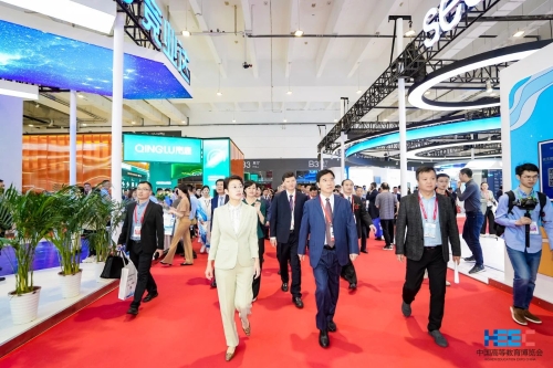 杜玉波在致辭時(shí)指出,本屆高博會(huì)恰逢中國高等教育學(xué)會(huì)成立40周年,也是在青島舉辦的第四次高博會(huì),呈現(xiàn)出四大亮點(diǎn)和特色。一是傳承品牌特色,全面展示高新教育技術(shù)裝備。本屆高博會(huì)特裝展位占比90%,展出一萬余件教育裝備產(chǎn)品,啟動(dòng)“高校設(shè)備采購服務(wù)系統(tǒng)”共建儀式,全方位展現(xiàn)支撐教育高質(zhì)量發(fā)展的產(chǎn)品技術(shù)及重點(diǎn)項(xiàng)目。二是突出創(chuàng)新引領(lǐng),持續(xù)賦能高等教育高質(zhì)量發(fā)展。本屆高博會(huì)設(shè)置國際品牌、科創(chuàng)、黃大年式教師團(tuán)隊(duì)建設(shè)成果展示等特色專區(qū),打造集教育、科技、人才于一體的綜合性博覽會(huì)展覽模式。三是彰顯學(xué)術(shù)特征,聚焦研討高等教育改革發(fā)展的熱點(diǎn)問題。本屆高博會(huì)圍繞展覽展示主題,舉辦50多場(chǎng)高水平學(xué)術(shù)會(huì)議論壇,近20名院士親臨現(xiàn)場(chǎng)并作報(bào)告,積極回應(yīng)高等教育改革發(fā)展的重大關(guān)切。四是深化服務(wù)需求,更好助力區(qū)域經(jīng)濟(jì)社會(huì)發(fā)展。本屆高博會(huì)舉辦第四屆中國城市與高校發(fā)展大會(huì)、校地融合人才發(fā)展大會(huì)、山東半島藍(lán)色經(jīng)濟(jì)區(qū)高校畢業(yè)生招聘會(huì)等,為打造“膠東經(jīng)濟(jì)圈”賦能增效,充分發(fā)揮高等教育對(duì)區(qū)域經(jīng)濟(jì)發(fā)展的支撐引領(lǐng)作用。