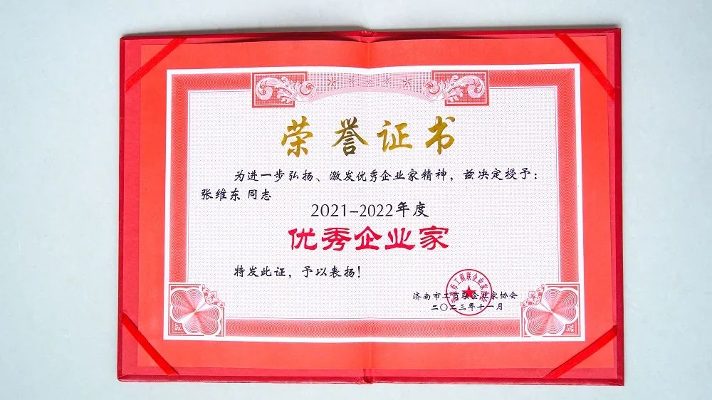 張維東被評為2021-2022年度優(yōu)秀企業(yè)家