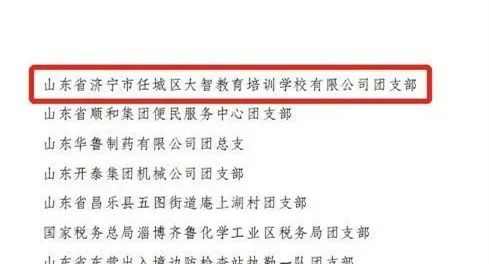 濟寧市任城區(qū)大智教育培訓學校有限公司團支部榮獲“全國五四紅旗團支部”稱號