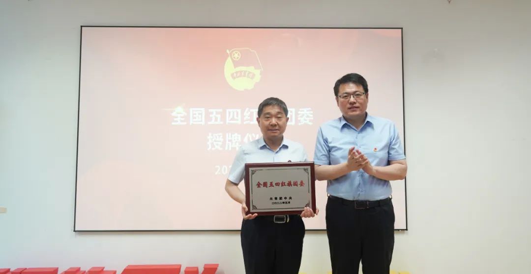 團省委副書記張守珩為大智控股集團團委頒發(fā)“全國五四紅旗團委”獎牌。