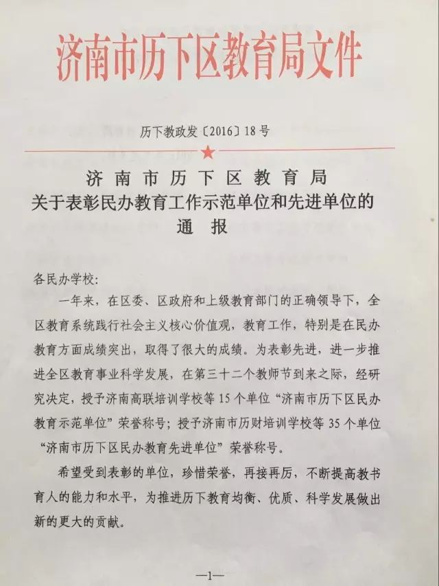 日前,濟南市歷下區(qū)教育局下發(fā)《濟南市歷下區(qū)教育局關于表彰民辦教育工作示范單位和先進單位的通報》,大智憑借優(yōu)質的教學服務、規(guī)范的教學管理以及優(yōu)異的教學成績榮獲“濟南市歷下區(qū)民辦教育示范單位”榮譽稱號。