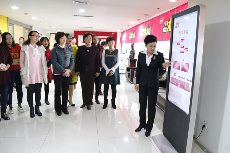 王現(xiàn)芹首先從整體上向大家介紹了大智 “執(zhí)行、誠(chéng)信、關(guān)愛(ài)”的企業(yè)文化和組織架構(gòu)。并帶領(lǐng)大家參觀了大智控股集團(tuán)黨群陣地。詳細(xì)向領(lǐng)導(dǎo)們介紹了大智“智惠黨建一三九”工作模式、所開展的黨建系列活動(dòng)。以黨建為引領(lǐng),大智形成了“一帶一促”群團(tuán)建設(shè)理念,打造了獨(dú)具特色的智惠工會(huì)、智惠團(tuán)建、智惠婦建和智惠統(tǒng)戰(zhàn),黨群建設(shè)工作取得實(shí)效成果。