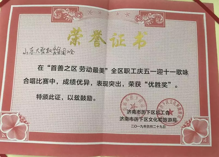 大智在濟(jì)南市歷下區(qū)“首善之區(qū) 勞動(dòng)最美”全區(qū)職工慶五一、迎十一合唱比賽中榮獲優(yōu)勝獎(jiǎng)