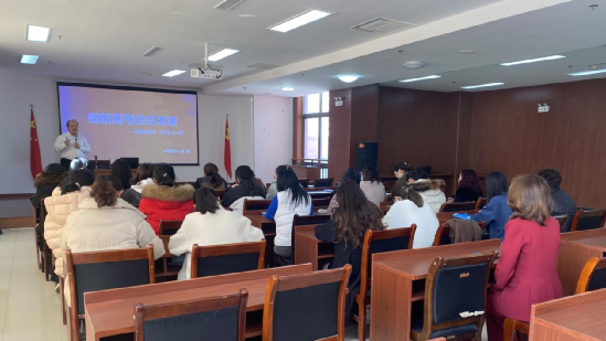 培訓(xùn)中,張朋從理論和實(shí)踐兩個(gè)層面對(duì)威海四中“低、慢、小、精”的課改理念和“三個(gè)中心”課改原則進(jìn)行深刻剖析:理論層面從基礎(chǔ)知識(shí)(鏈)角度、基礎(chǔ)題型(鏈)角度、基本能力(鏈)角度論證了“低、慢、小、精”課改理念的合理性和科學(xué)性;實(shí)踐層面基于威海四中學(xué)情和自身經(jīng)驗(yàn),從“基礎(chǔ)知識(shí)認(rèn)知弱、基本題型缺定法、基本能力憑感覺、語言態(tài)度糾偏少、寫作從無范文感”五大維度論證學(xué)?!皞湔n以學(xué)生為中心、上課以活動(dòng)為中心、作業(yè)以雙基為中心”課改實(shí)踐原則的合理性和科學(xué)性。