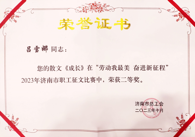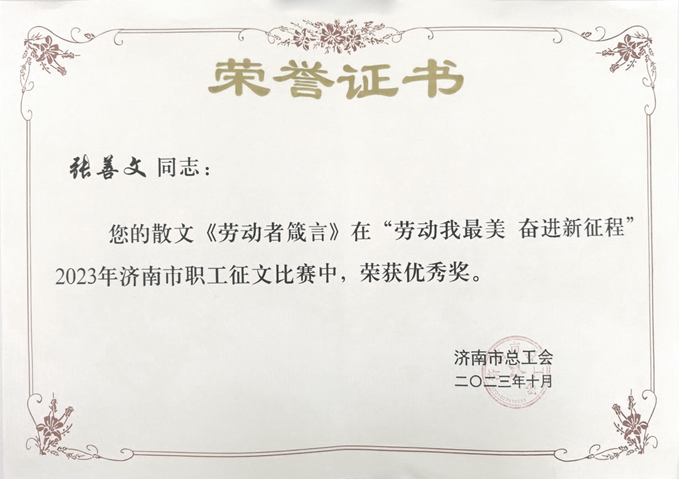 11月7日,“勞動我最美 奮進新征程”2023年濟南市職工征文比賽頒獎儀式在全省工會融媒體中心舉辦。