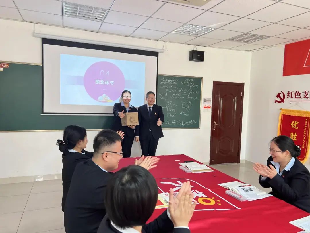 大智金復(fù)教育教學(xué)研究服務(wù)院院長劉勤章、大智金復(fù)語文政治導(dǎo)學(xué)研究服務(wù)所所長賈桐桐以及大智金復(fù)英語導(dǎo)學(xué)研究服務(wù)所所長鄭榮南分別為獲獎家人頒獎。
