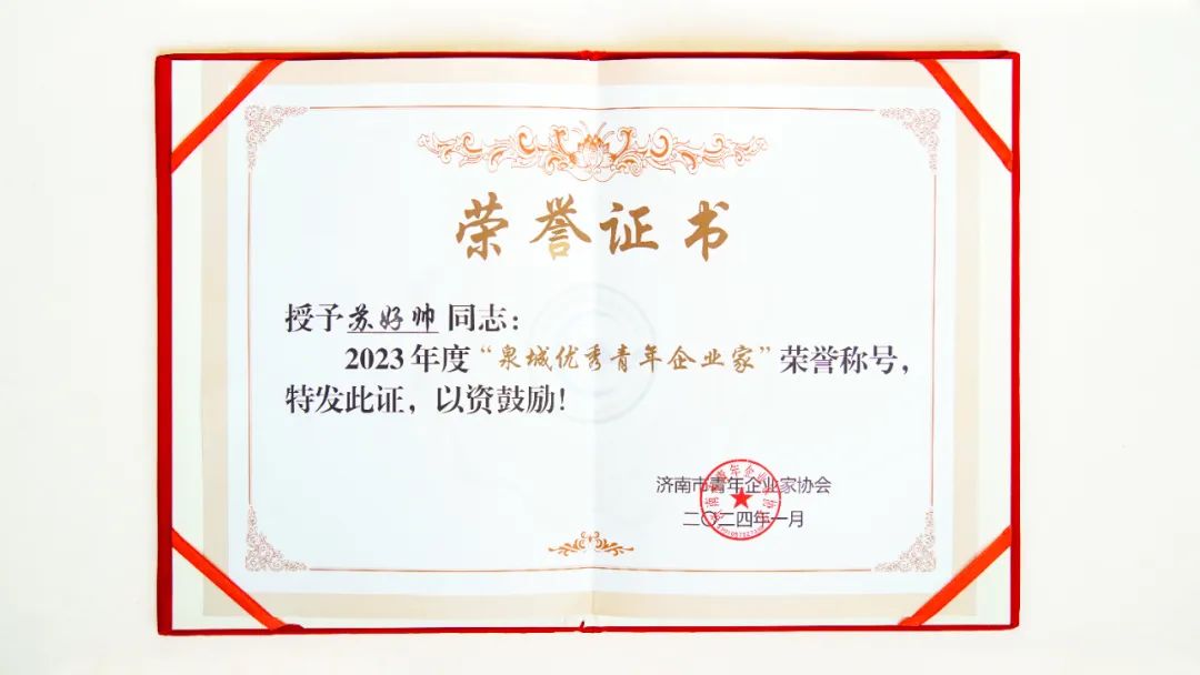 蘇好帥榮獲“泉城優(yōu)秀青年企業(yè)家”稱號(hào)