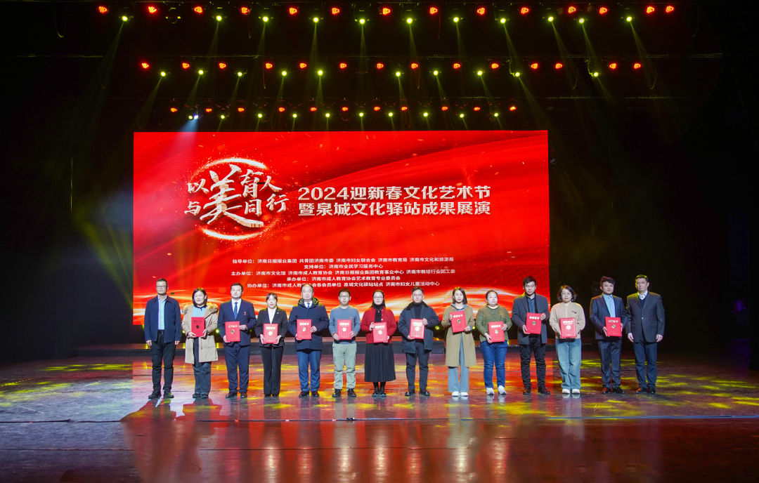 2月3日,由濟南市文化館、濟南市成人教育協(xié)會、濟南日報報業(yè)集團教育事業(yè)中心、濟南市教培行業(yè)團工委主辦,濟南市成人教育協(xié)會藝術教育專業(yè)委員會承辦的2024迎新春文化藝術節(jié)暨泉城文化驛站成果展演隆重舉行 。