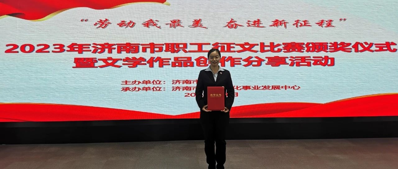11月7日,“勞動(dòng)我最美奮進(jìn)新征程”2023年濟(jì)南市職工征文比賽頒獎(jiǎng)儀式在全省工會(huì)融媒體中心舉辦。 現(xiàn)場(chǎng),為獲得優(yōu)秀組織獎(jiǎng)的系統(tǒng)工會(huì)代表...