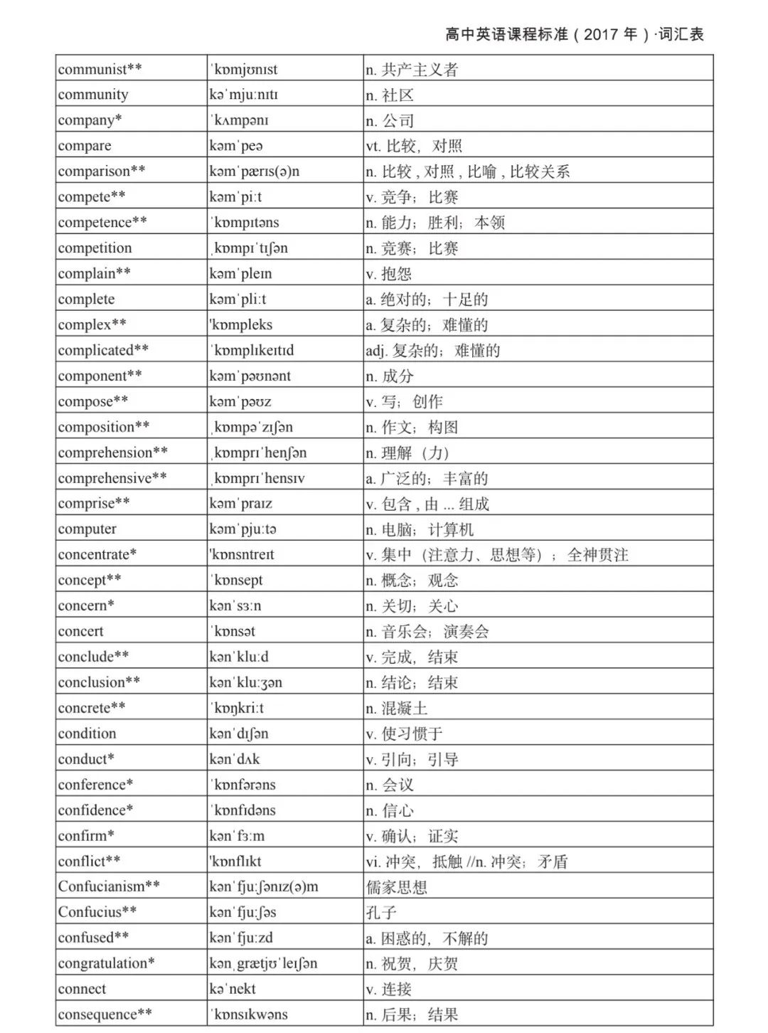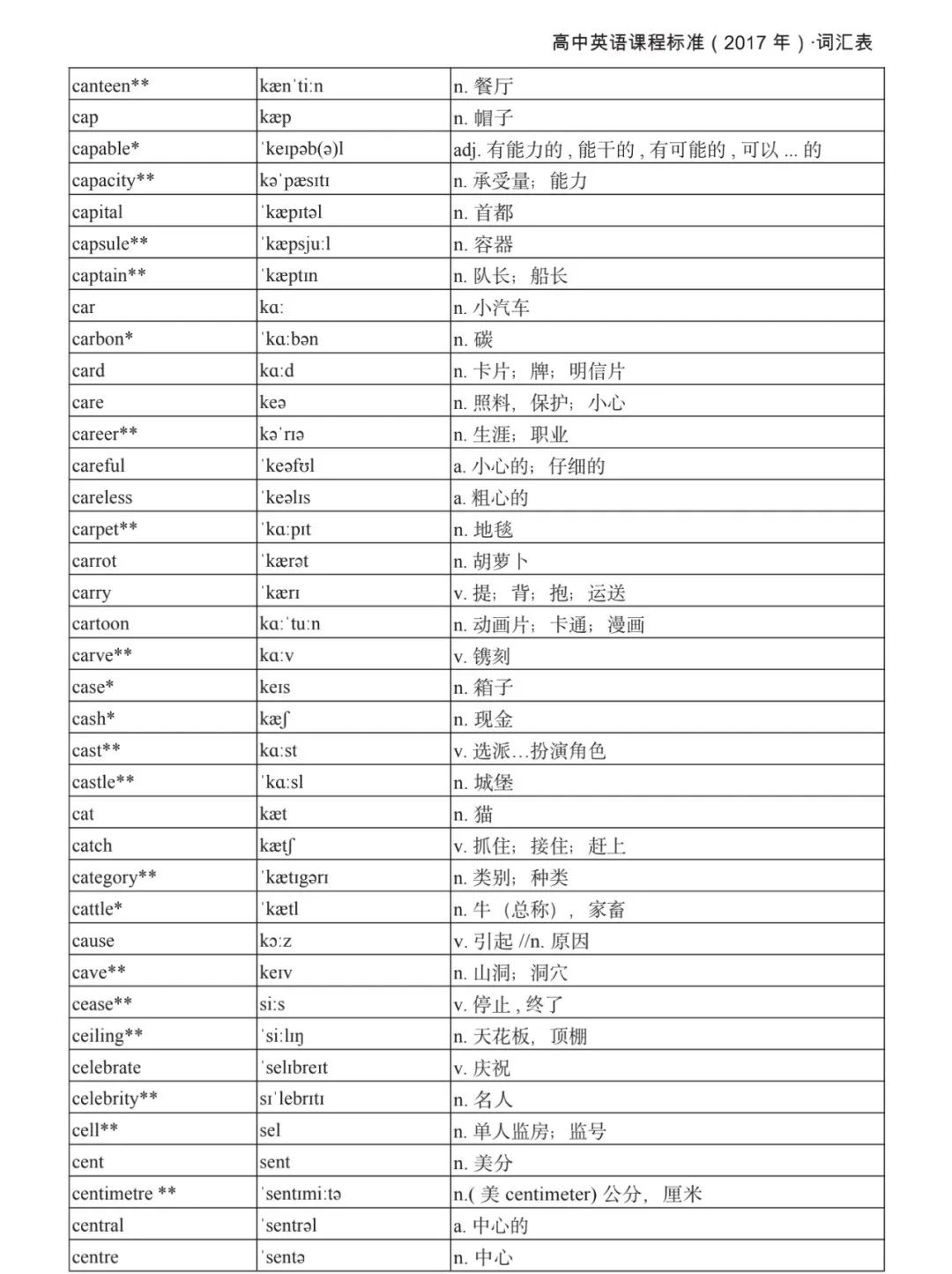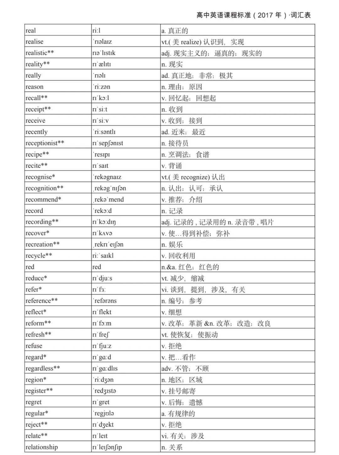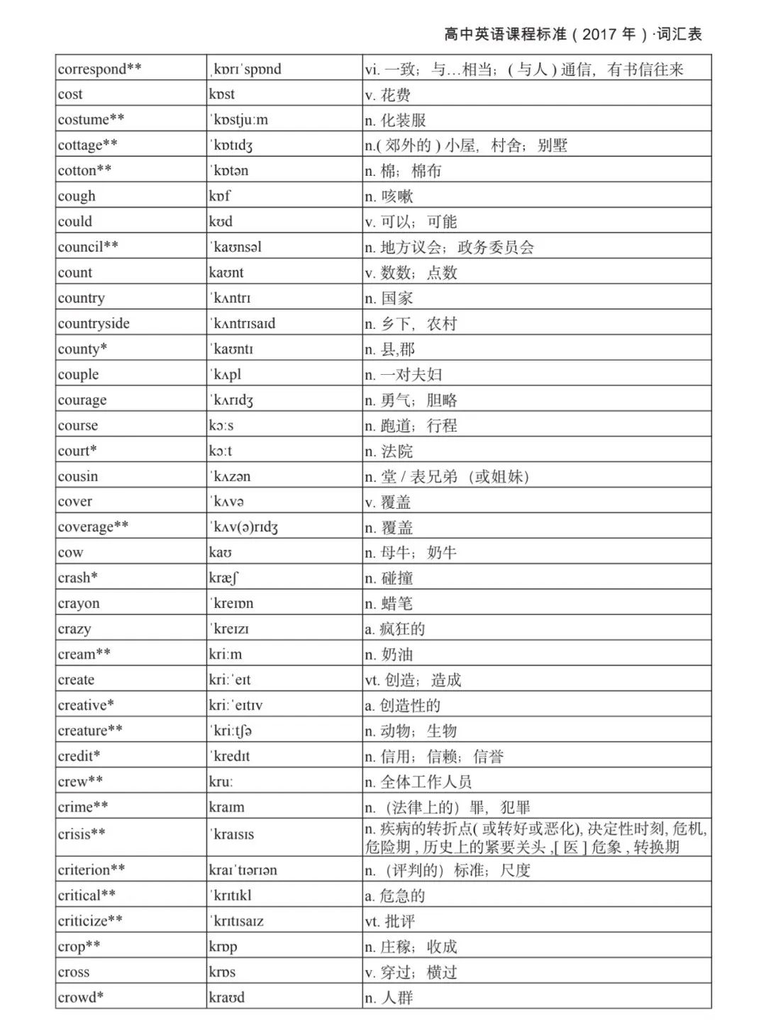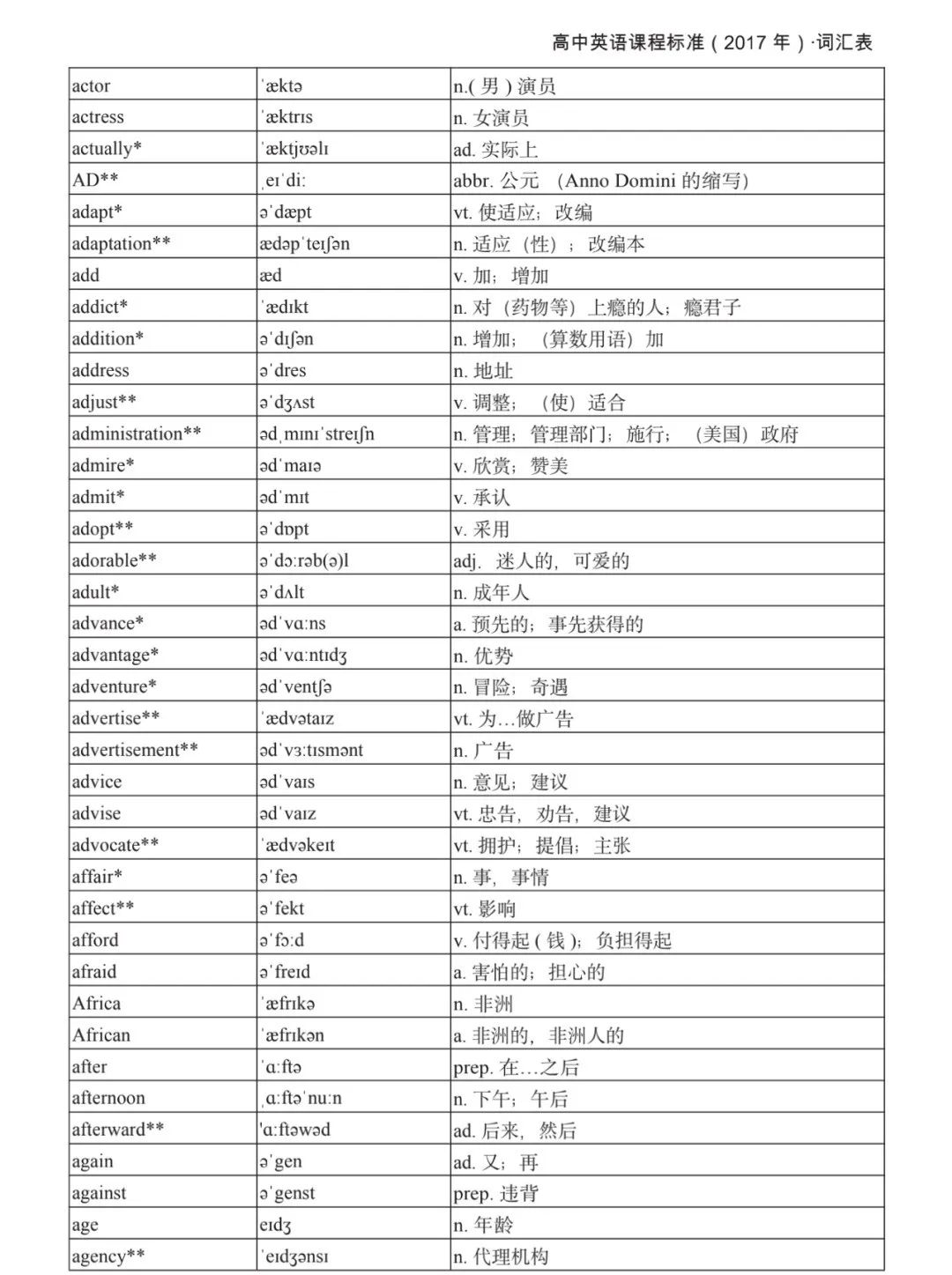 【干貨】普通高中英語課程標(biāo)準(zhǔn) 3000詞匯表附音標(biāo)