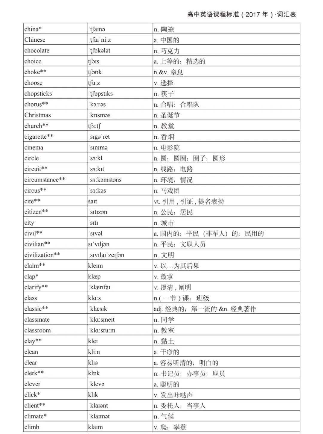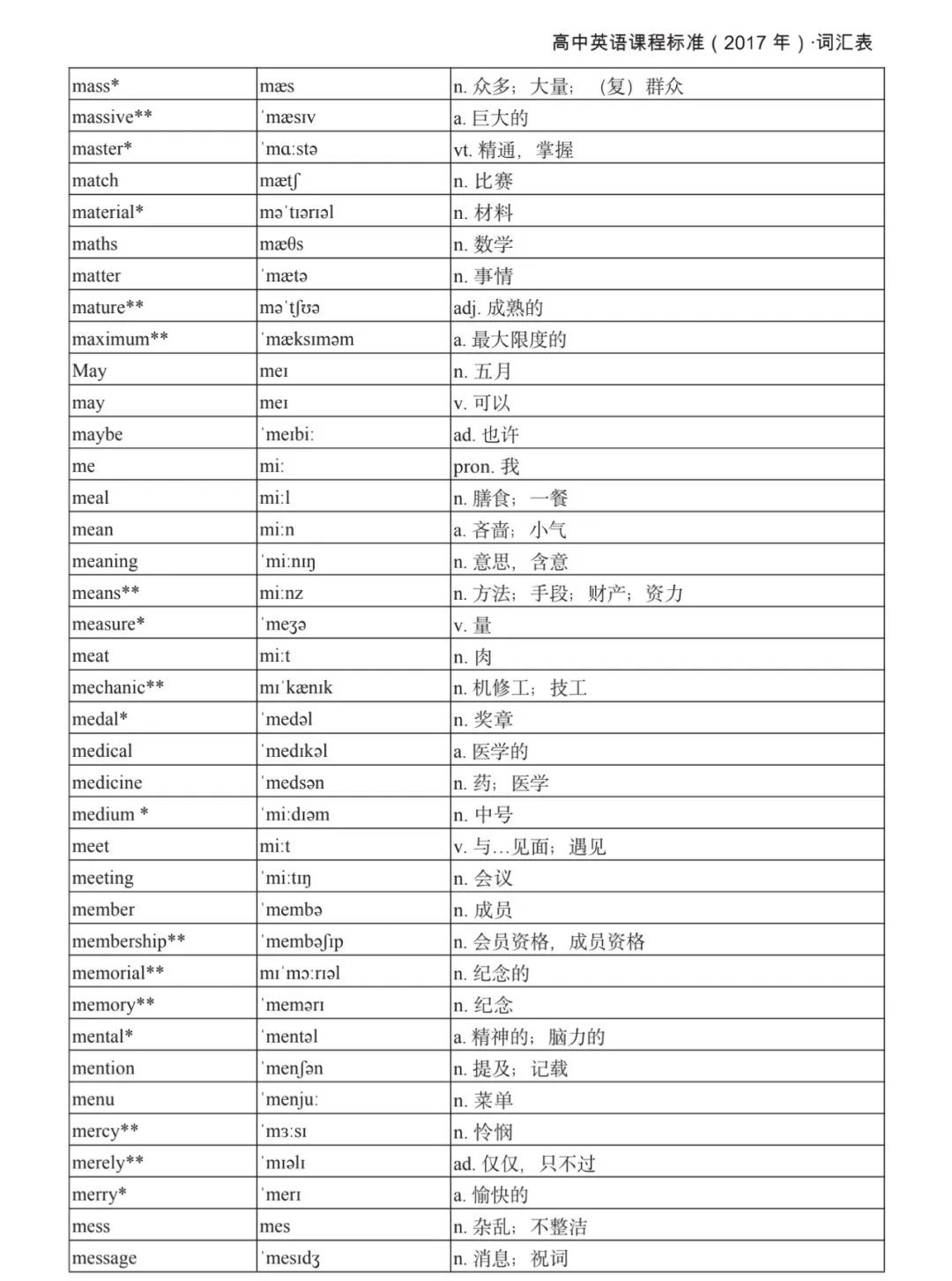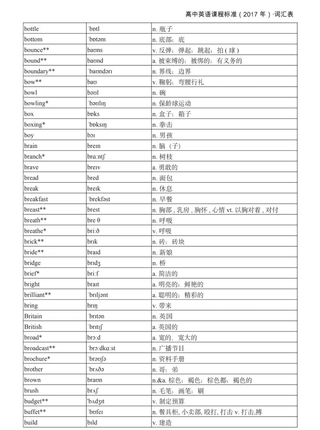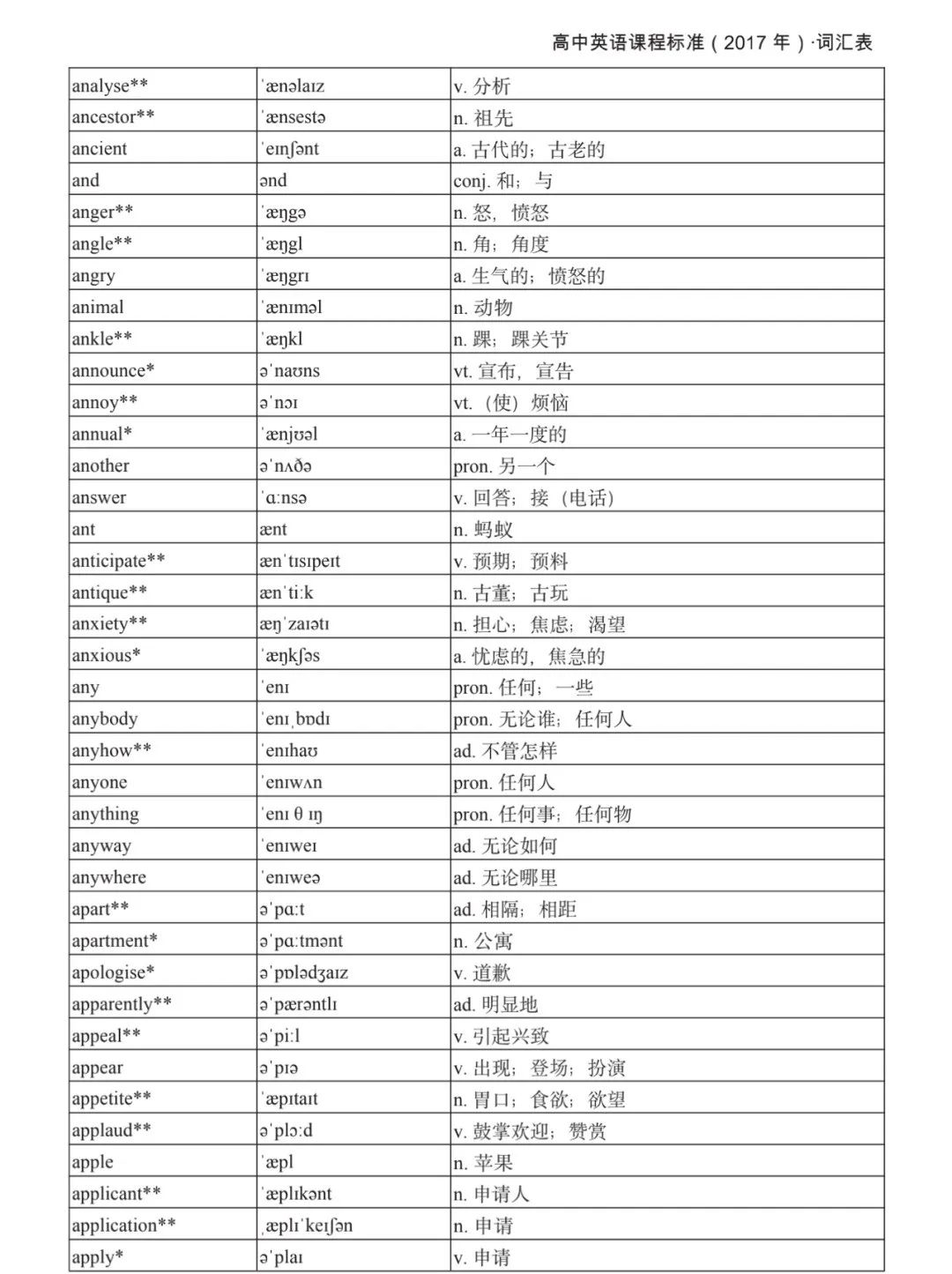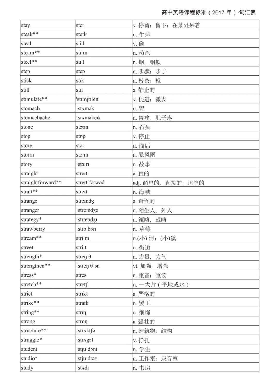 【干貨】普通高中英語課程標(biāo)準(zhǔn) 3000詞匯表附音標(biāo)