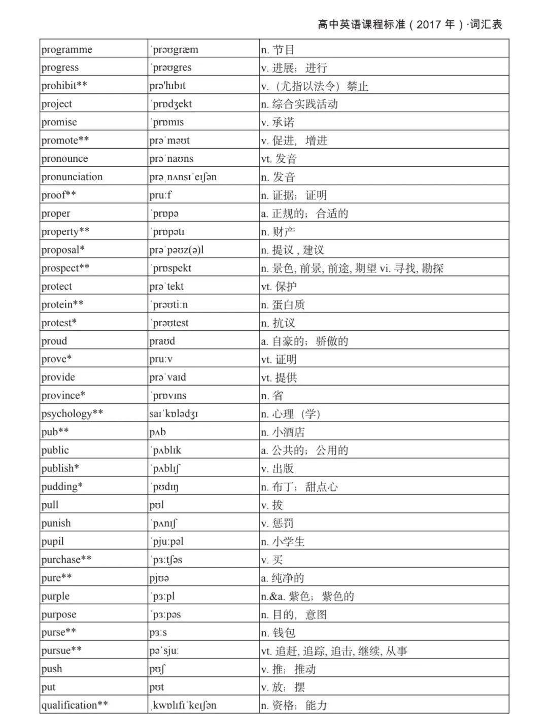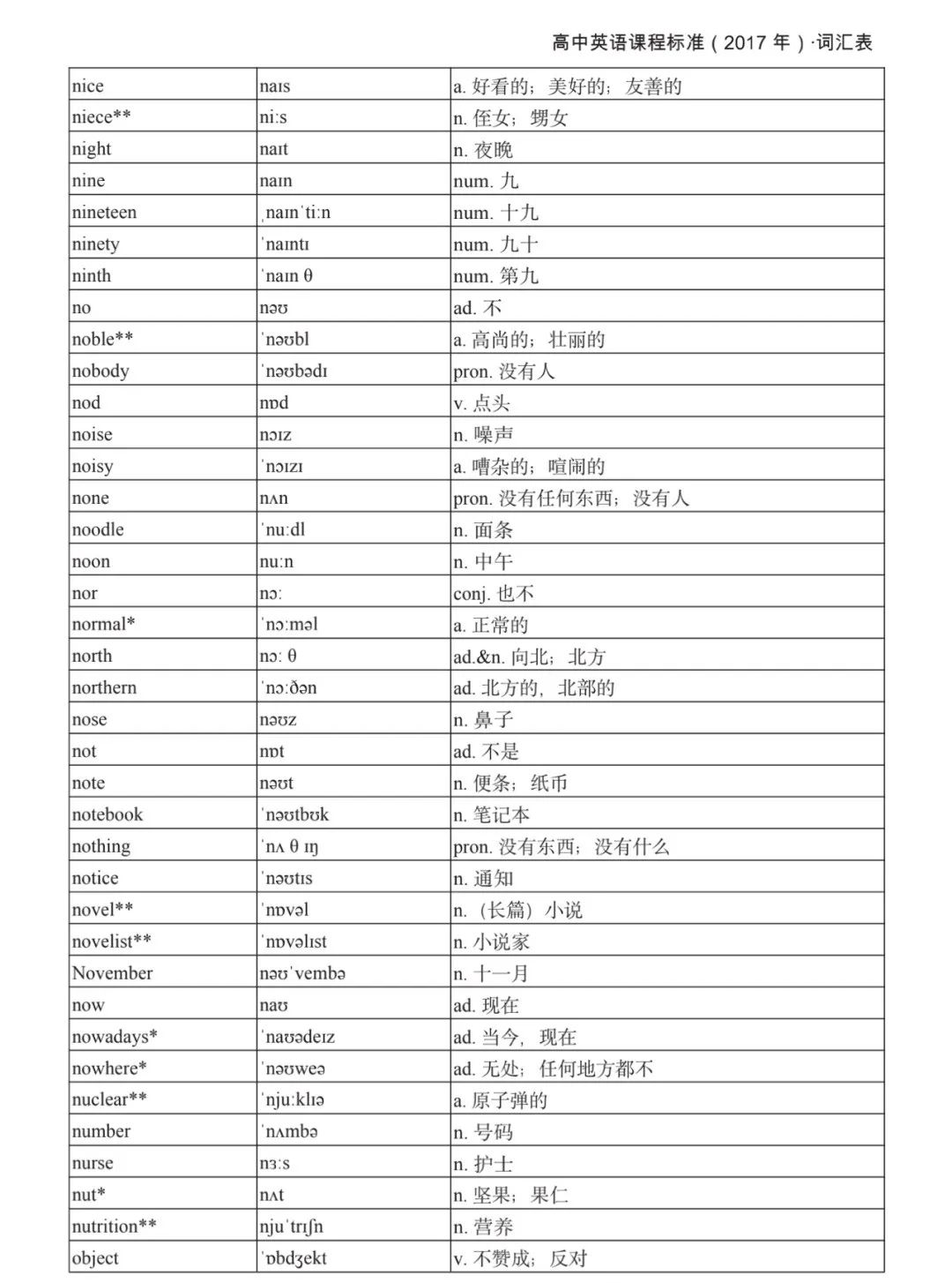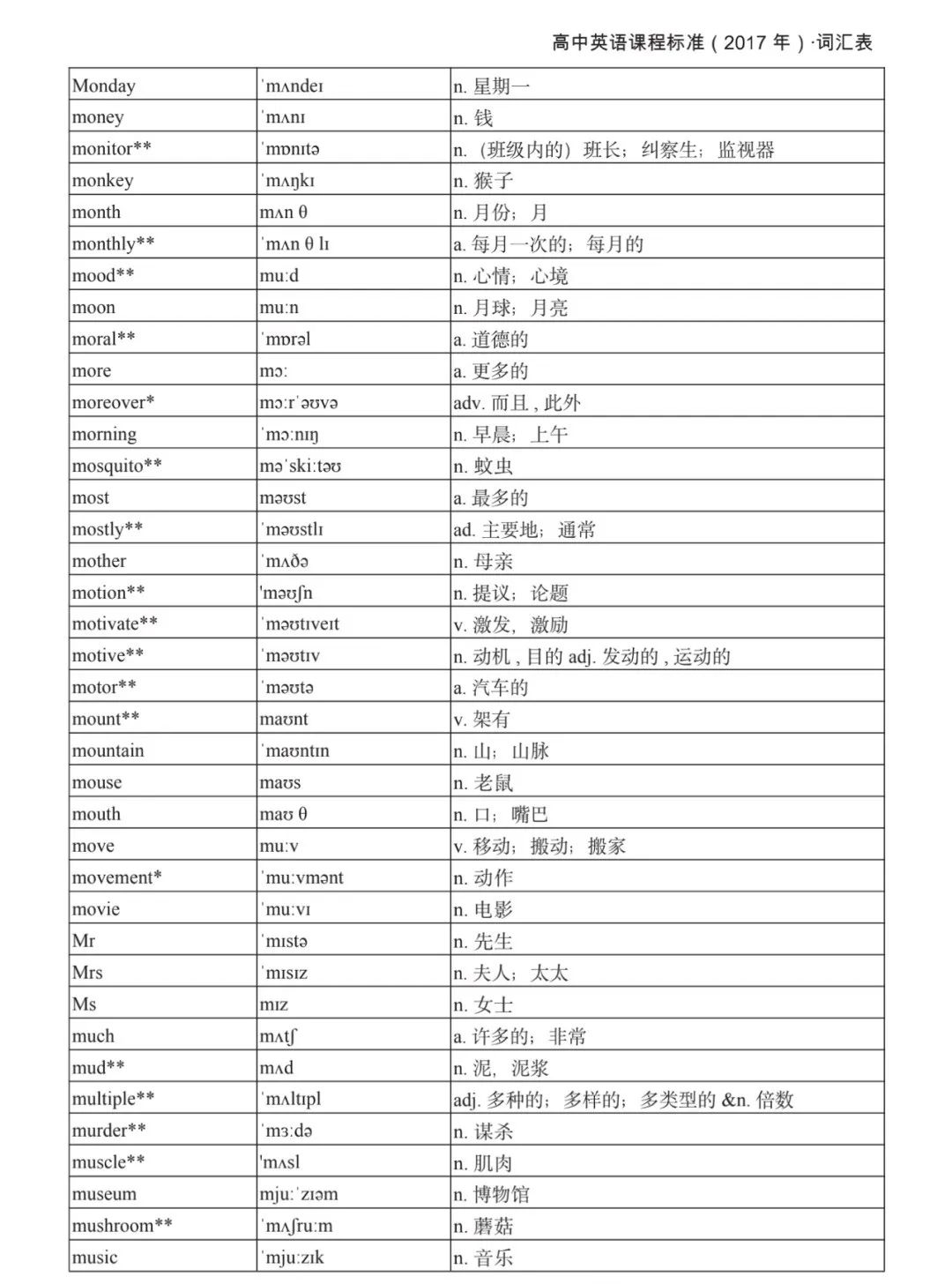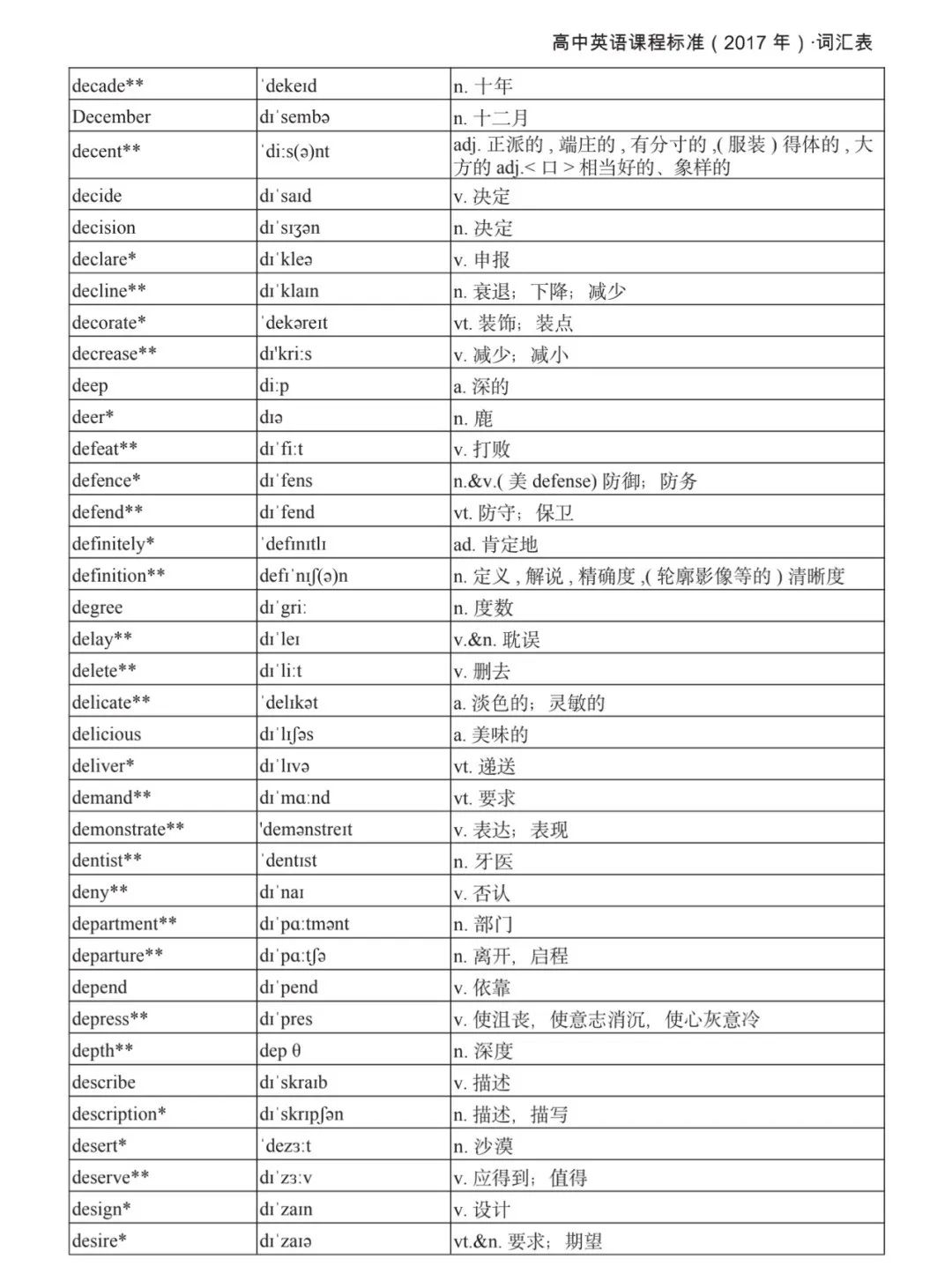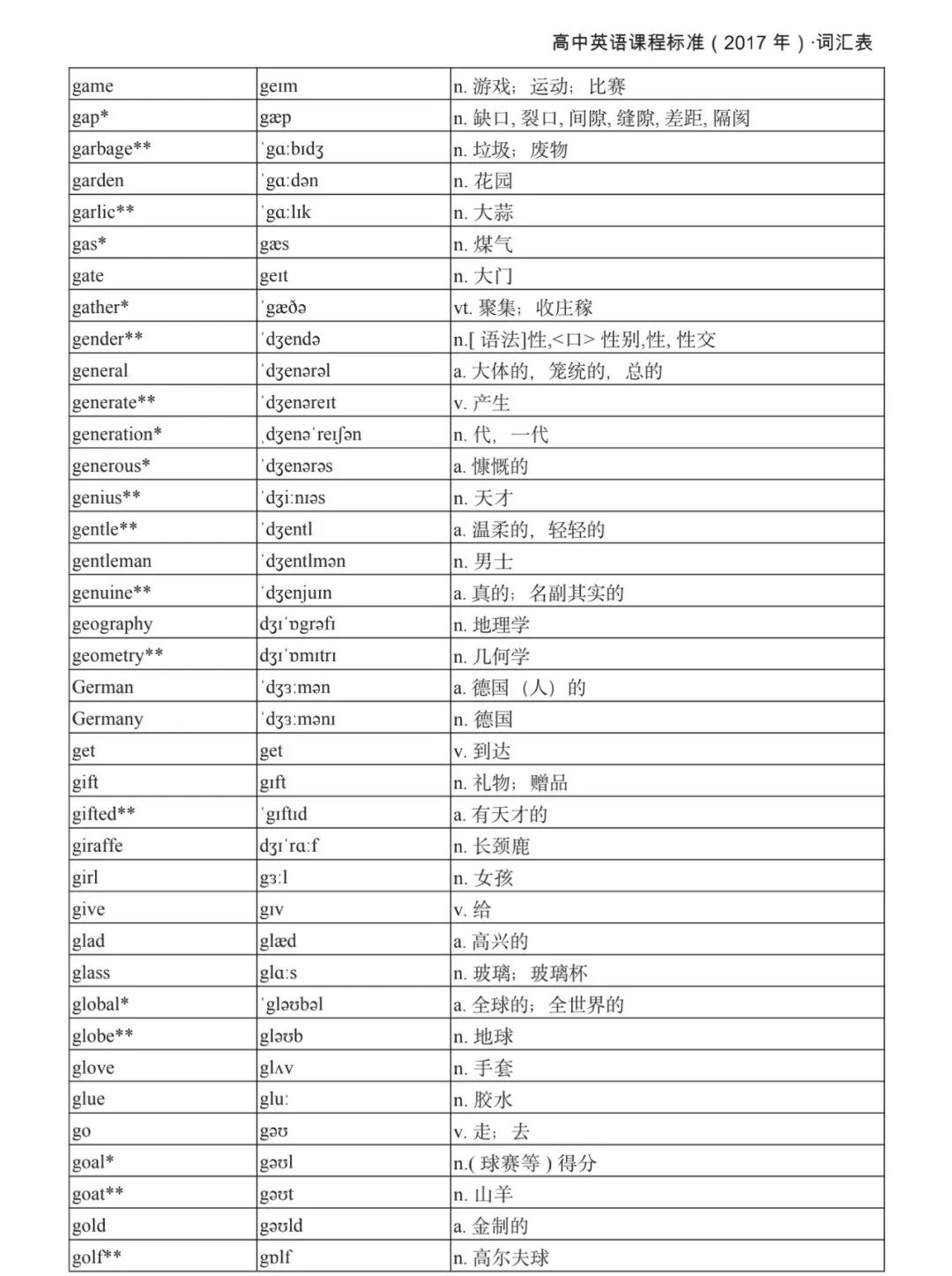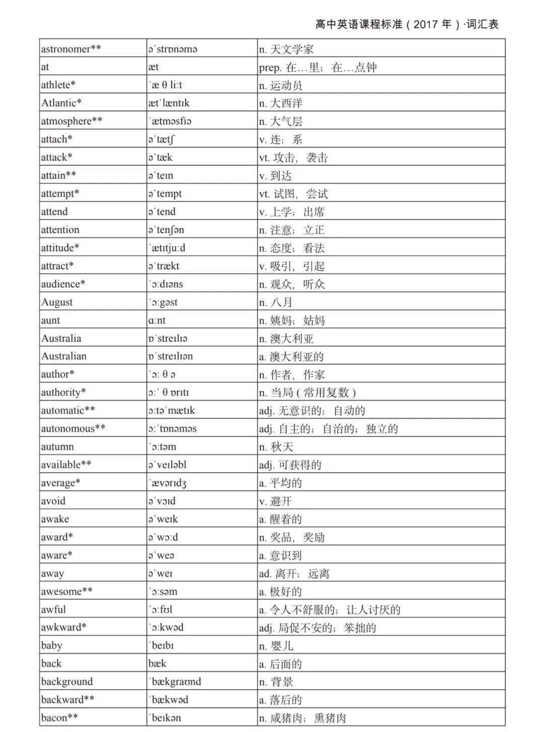 【干貨】普通高中英語課程標(biāo)準(zhǔn) 3000詞匯表附音標(biāo)