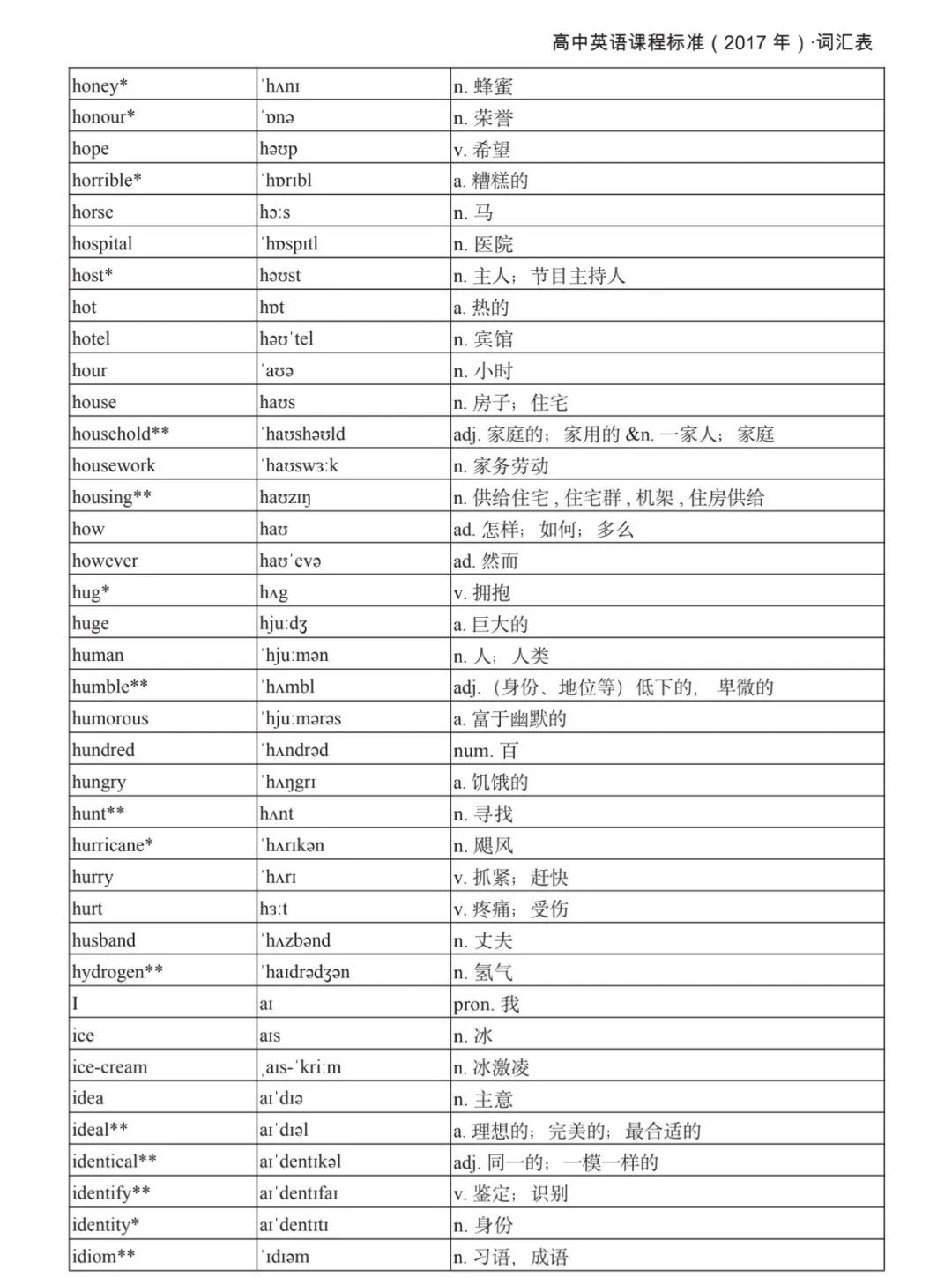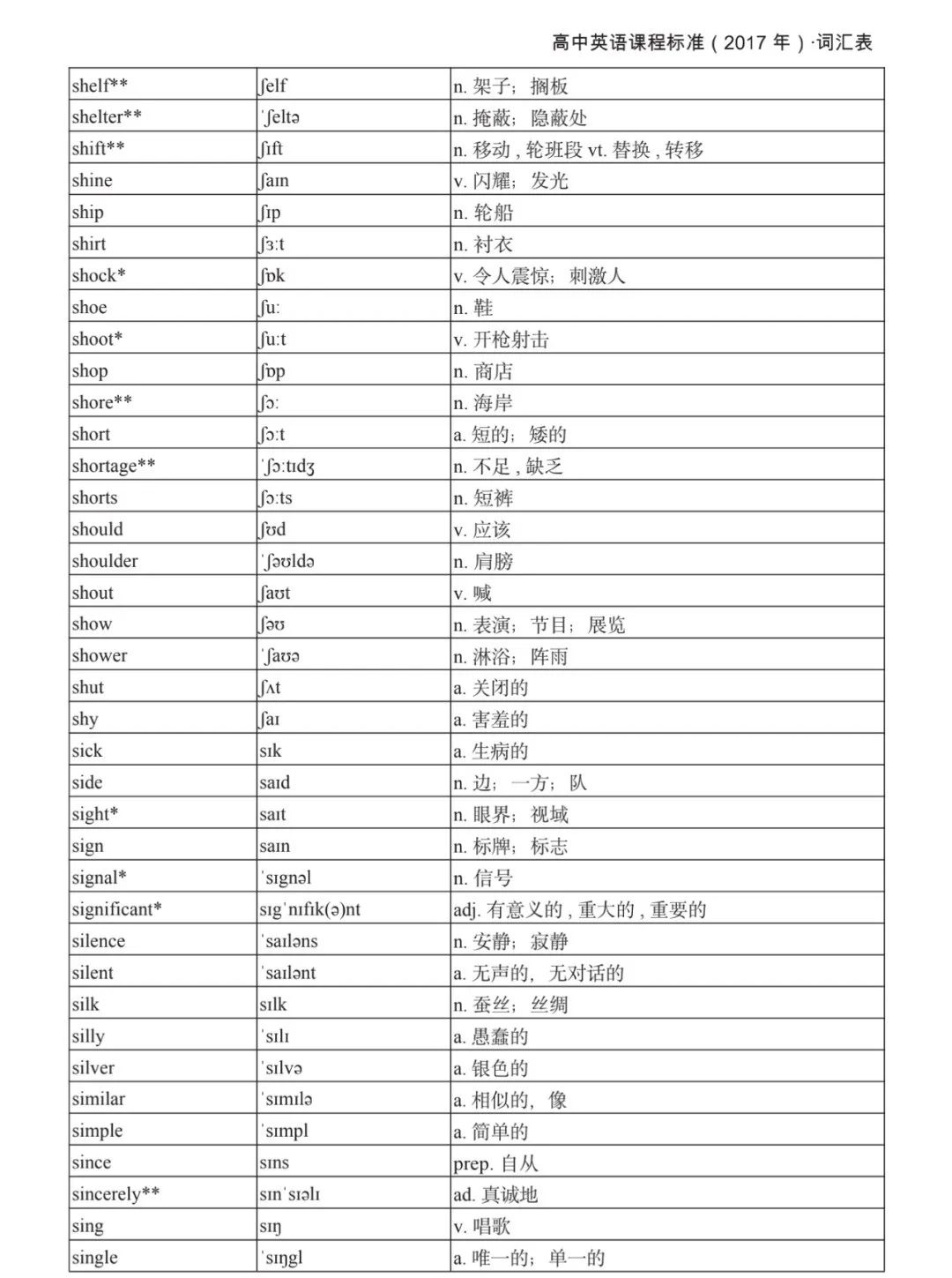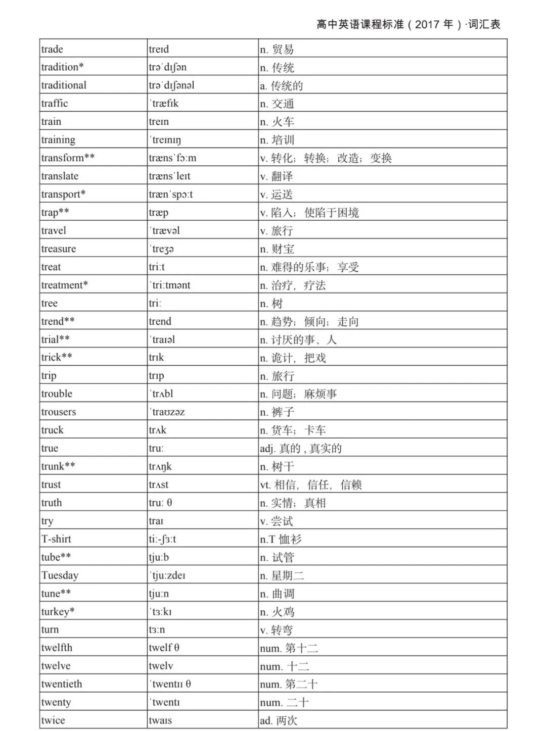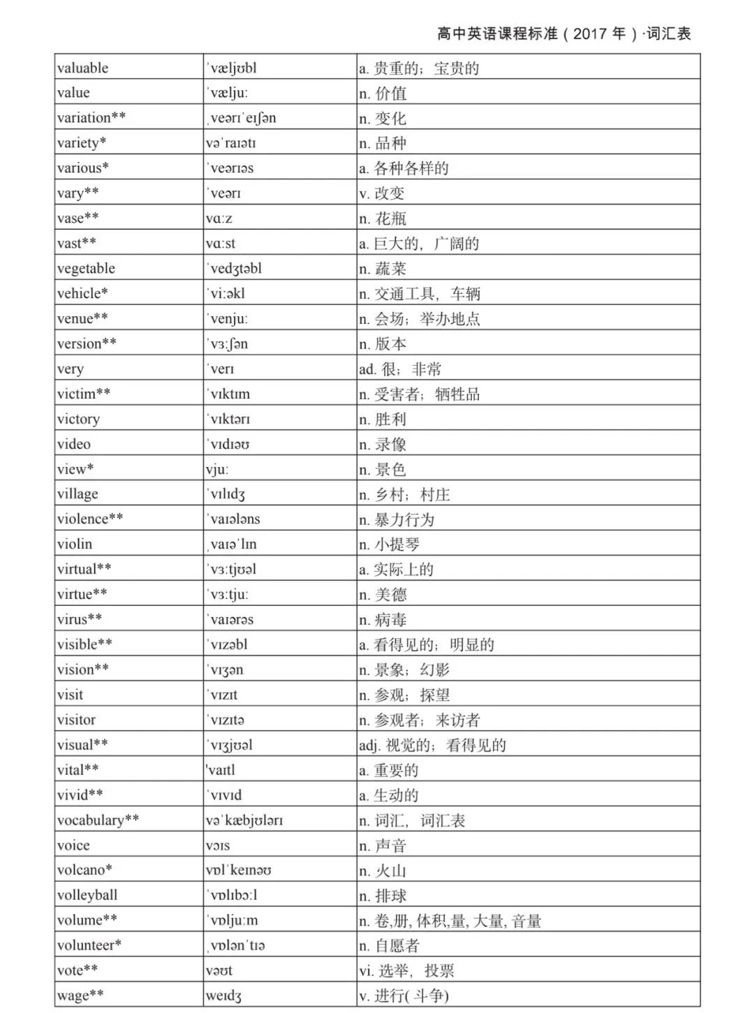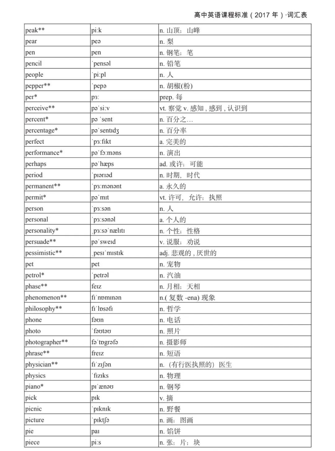 【干貨】普通高中英語課程標(biāo)準(zhǔn) 3000詞匯表附音標(biāo)