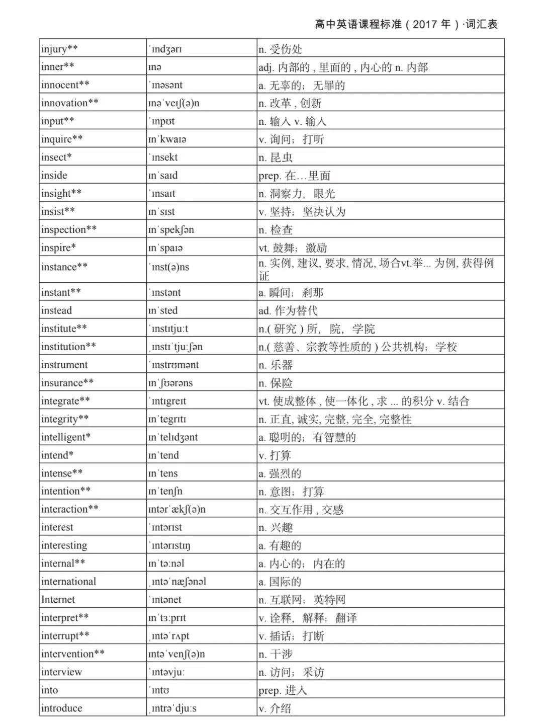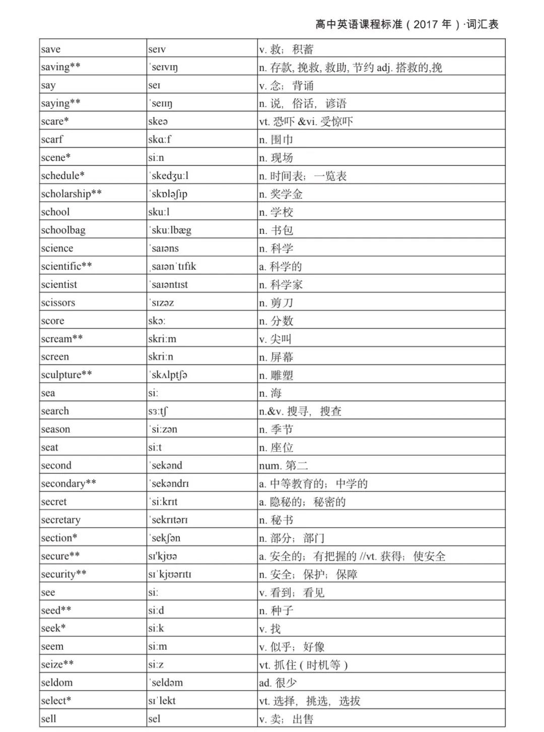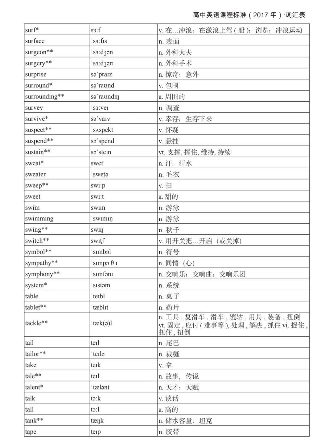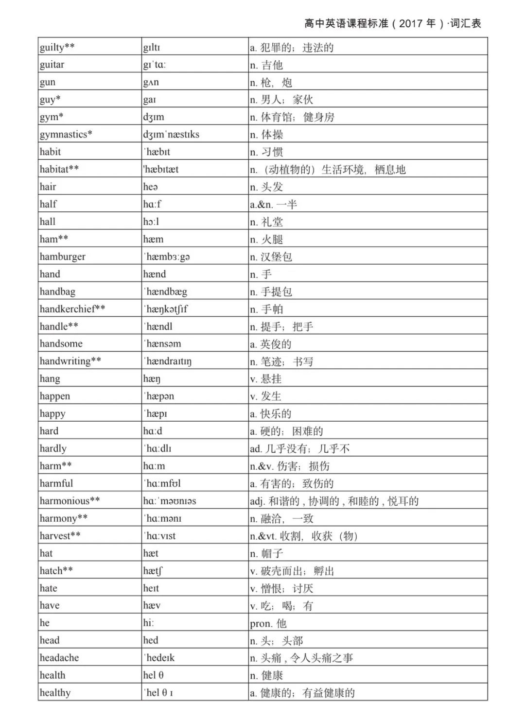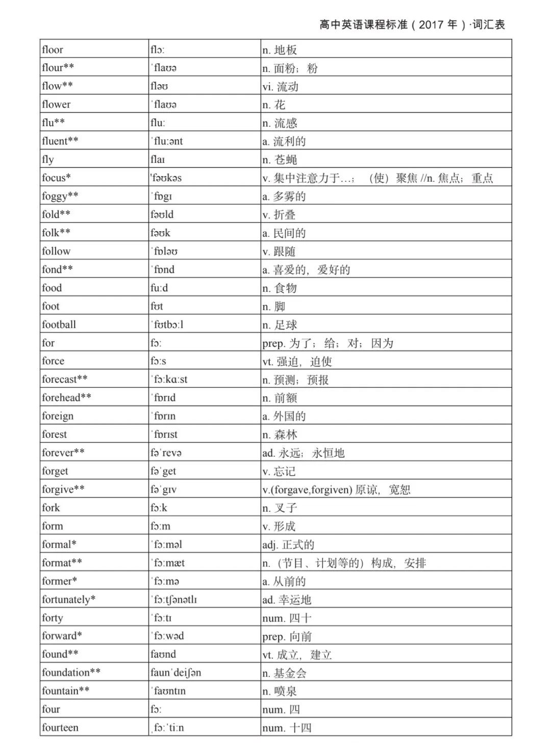【干貨】普通高中英語課程標(biāo)準(zhǔn) 3000詞匯表附音標(biāo)