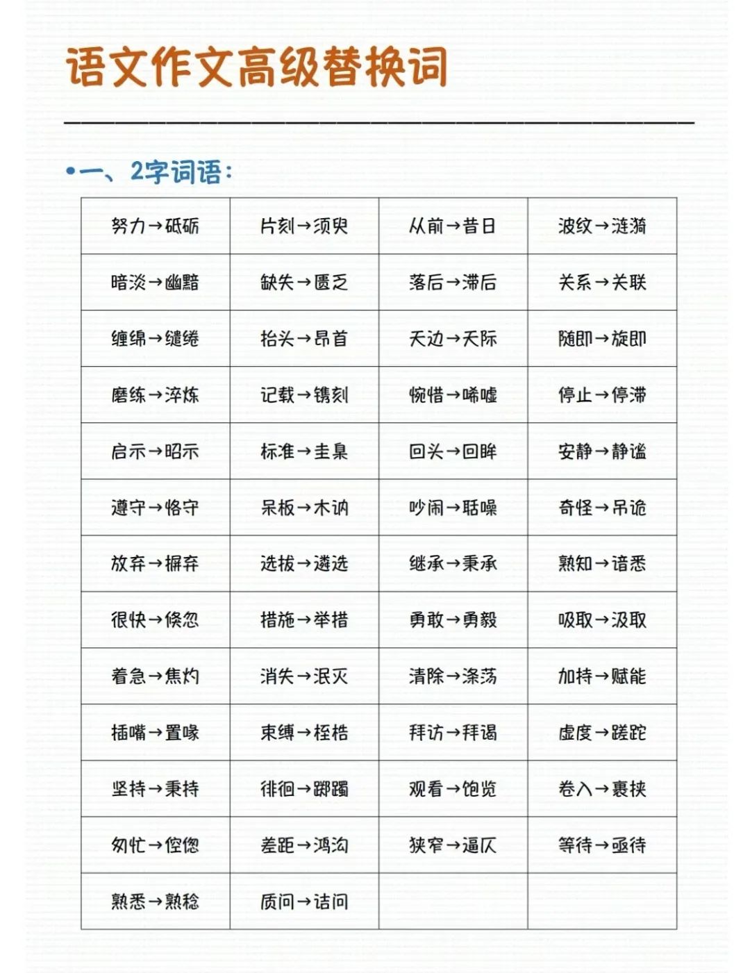 語文作文高級替換詞▍ 聲明:本文整理自網(wǎng)絡,如有侵權(quán),請聯(lián)系刪除。