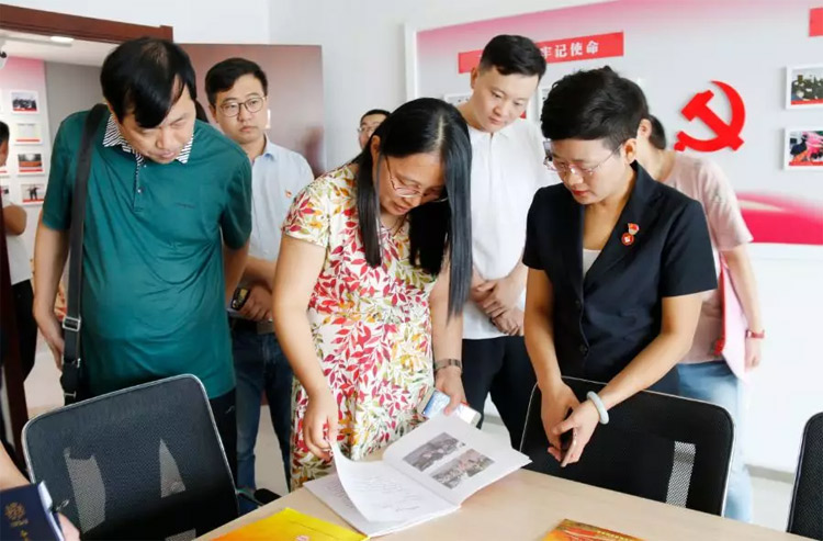 港溝街道黨工委副書記路洪燕帶領(lǐng)轄區(qū)非公企業(yè)黨組織負責(zé)人到大智考察黨建工作
