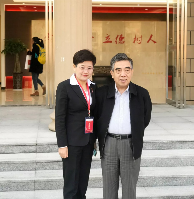 (王現(xiàn)芹與中國民辦教育協(xié)會(huì)會(huì)長(zhǎng)王佐書合影)
