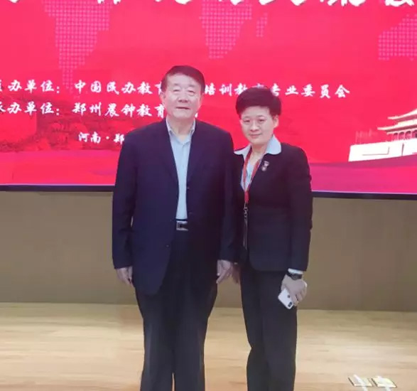 (王現(xiàn)芹與中國民辦教育協(xié)會(huì)培訓(xùn)教育委員會(huì)理事長(zhǎng)張強(qiáng)合影)