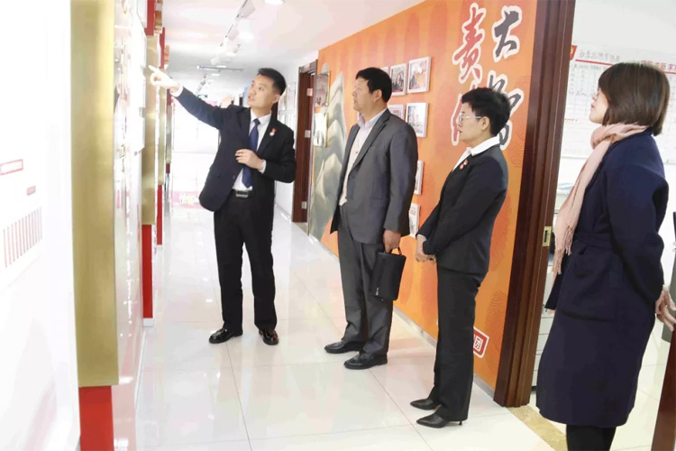 常廣成帶領大家參觀了黨建長廊,詳細介紹了大智圍繞“黨務支持業(yè)務,業(yè)務反哺黨務”的理念開展的黨建工作。