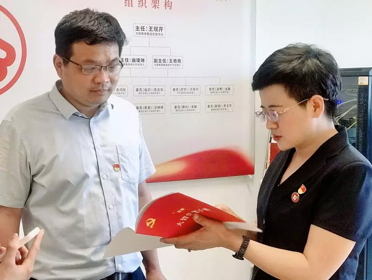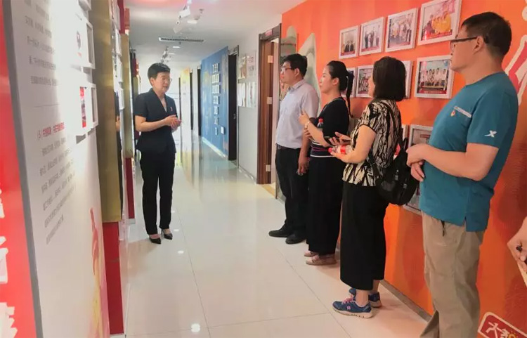 05月23日,濟南明府城管理中心副主任王虎一行到大智考察黨建工作。大智控股集團黨委書記王現(xiàn)芹熱情接待。