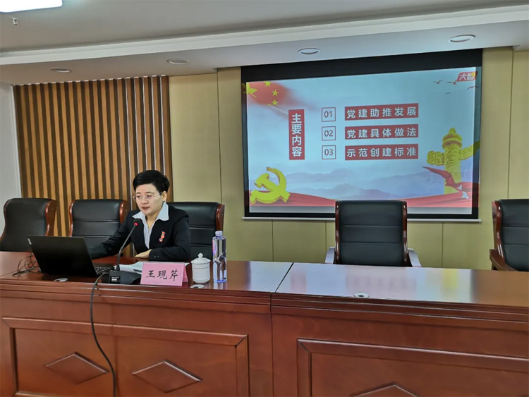 王現(xiàn)芹以打造企業(yè)發(fā)展的紅色“引擎”為主題,從黨建助推發(fā)展、黨建具體做法、示范創(chuàng)建標(biāo)準(zhǔn)三個方面進(jìn)行了生動的講述,并對《濟(jì)南市黨支部建設(shè)提升工作評價標(biāo)準(zhǔn)》相關(guān)內(nèi)容作了全面解讀,引發(fā)與會人員熱烈反響。