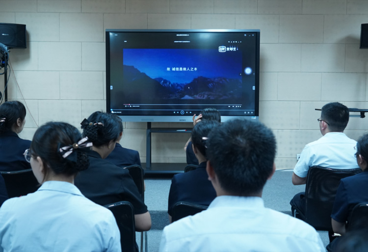 緊接著,大家集體觀看了“誠(chéng)實(shí)守信,我是黨員我先行”誠(chéng)信視頻。