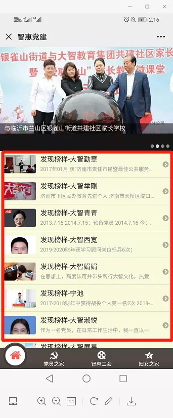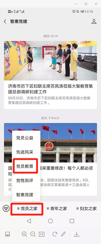 第二步:找到底部菜單“黨員之家”,點擊二級菜單“黨員教育”。