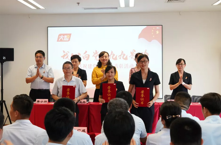 今年是偉大的中國共產(chǎn)黨成立99周年,在“七一”來臨之際,06月23日,大智控股集團黨委在總部會議室隆重舉行“我心向黨 九九為功” 慶祝建黨99周年暨優(yōu)秀黨員分享會。會上,對2019年度“先進黨支部” “優(yōu)秀共產(chǎn)黨員”及“雙支雙促最佳城市負責人”進行表彰。濟南市歷下區(qū)解放路街道黨工委黨建辦副主任王琳,解放路街道黨工委黨建辦負責人王雯雯蒞臨現(xiàn)場指導(dǎo)。