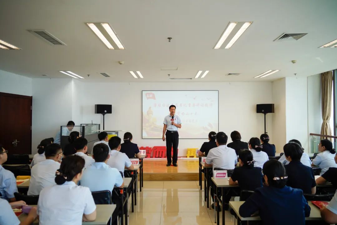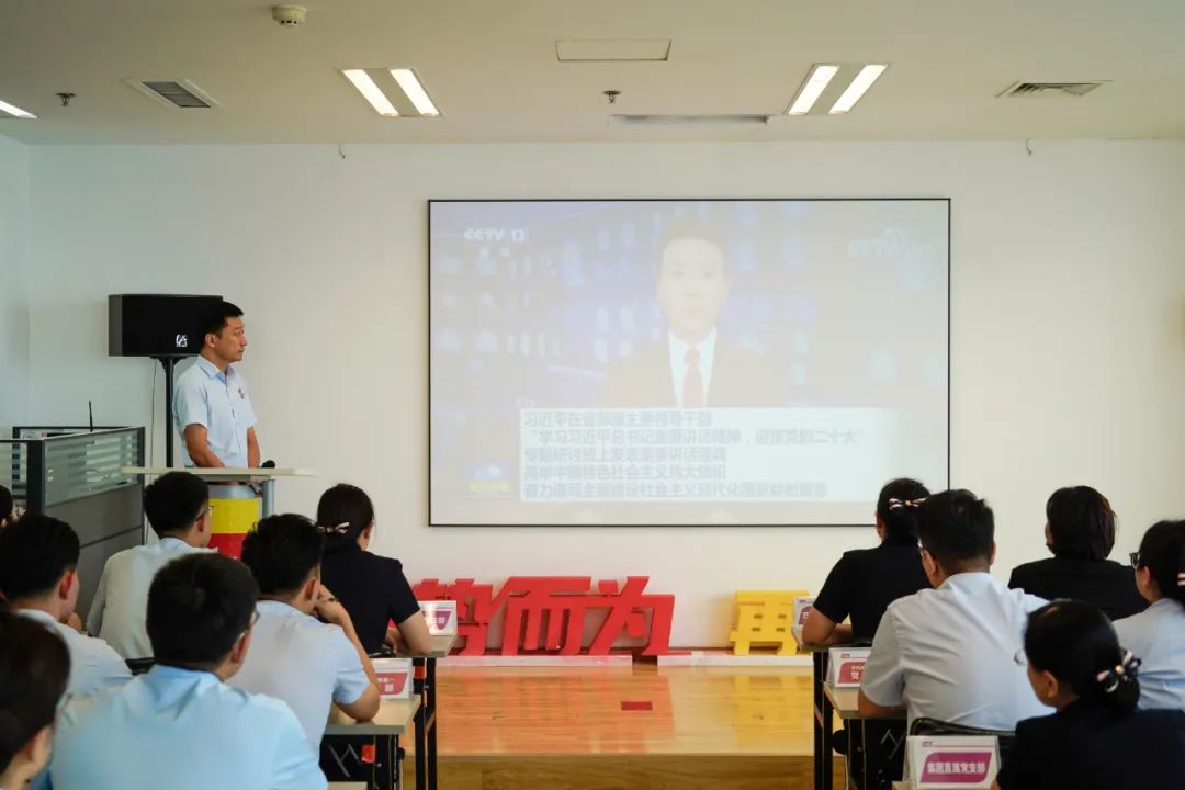 現(xiàn)場,大家學習了習近平總書記在省部級主要領導干部“學習習近平總書記重要講話精神,迎接黨的二十大”專題研討班上的重要講話精神以及《中國共產黨黨徽黨旗條例》內容。