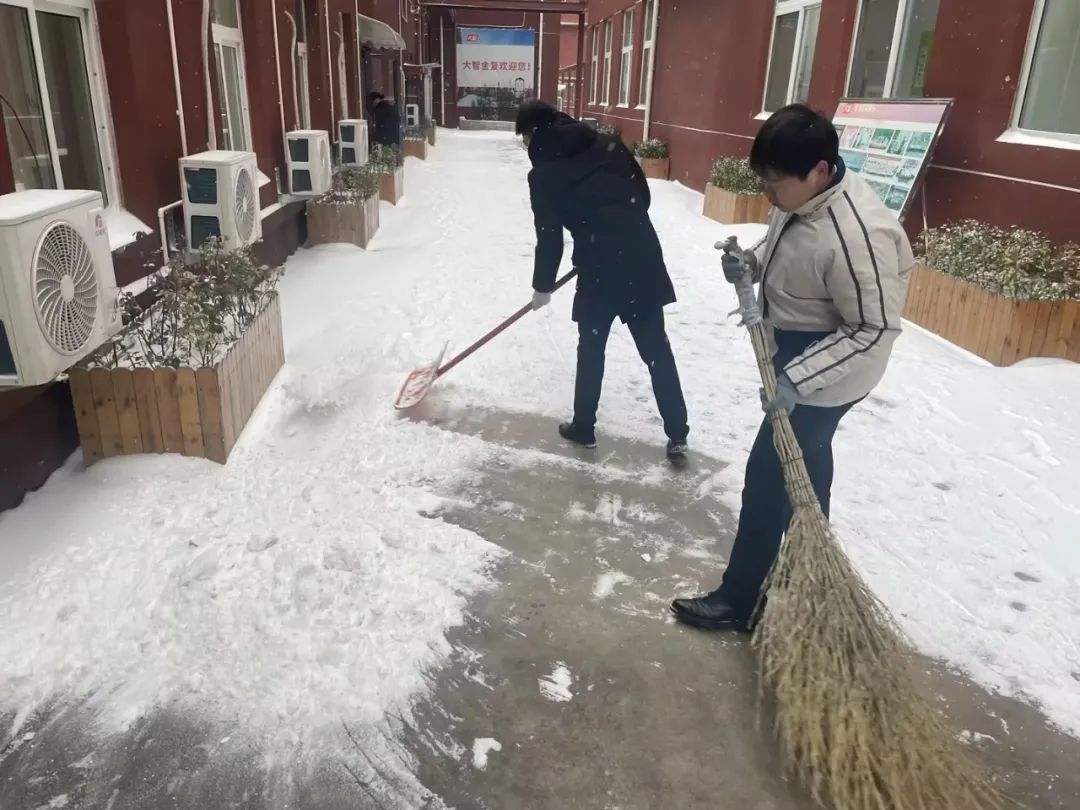 大家分區(qū)分片,奮力掃除周邊道路積雪,清掃出條條干凈、整潔的便民之路,為大家的安全出行提供保障。