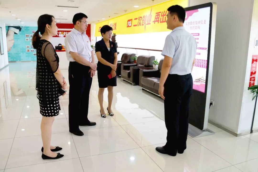 08月16日,濟南市歷下區(qū)燕山街道黨建辦主任李振清一行蒞臨大智教育集團考察交流黨建工作。大智教育集團黨委委員常廣成熱情接待?!私獯笾墙逃?..