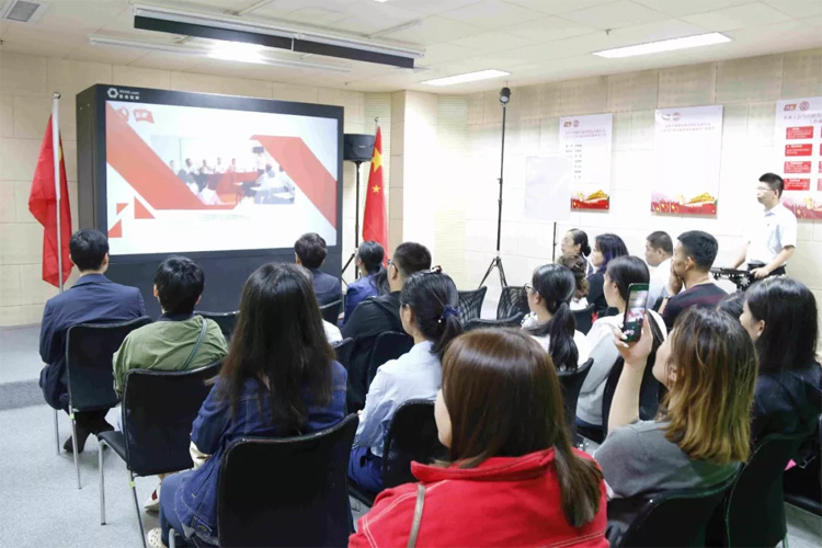 考察中,王現(xiàn)芹帶領(lǐng)大家參觀了大智教育集團(tuán)黨建陣地,介紹了大智“智惠黨建一三九”工作模式、所開展的黨建系列活動(dòng)、大智“一帶一促”群團(tuán)建設(shè)理念和“智惠+”群團(tuán)建設(shè)模式。