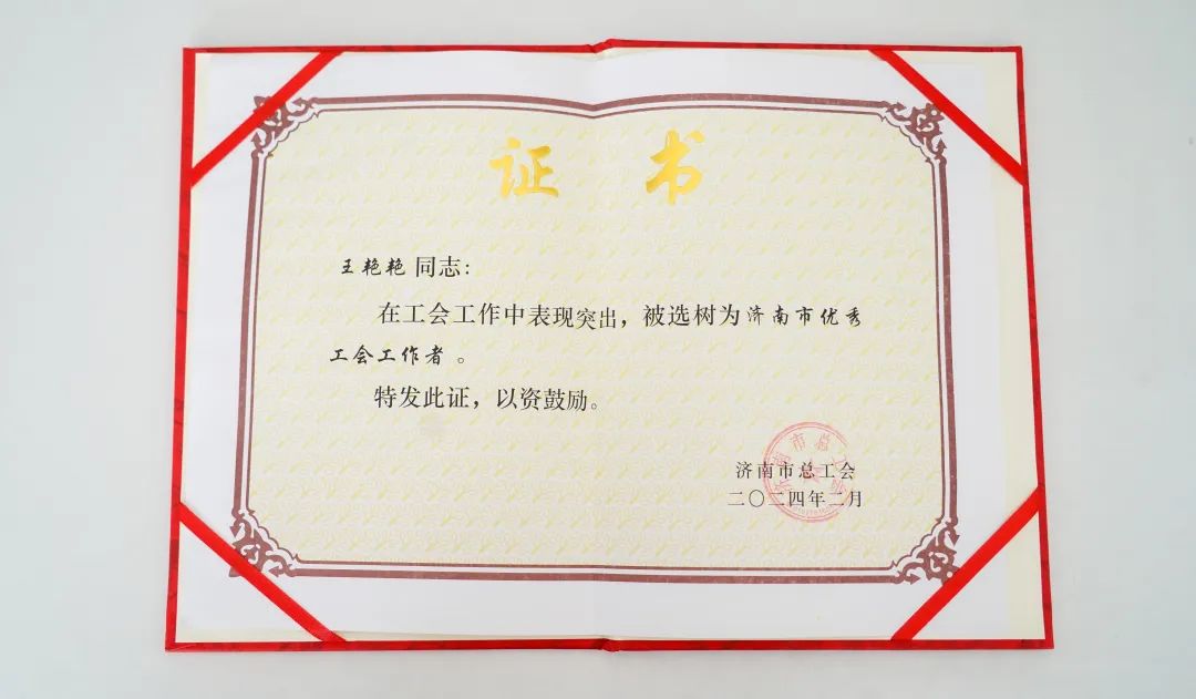 為激勵先進,樹立榜樣,發(fā)揮典型示范作用,近日,濟南市總工會開展?jié)鲜袃?yōu)秀工會工作者選樹活動。大智控股集團工會主席王艷艷被樹為濟南市優(yōu)秀工會工...