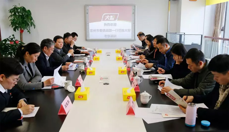 03月29日,江蘇省常州市委統(tǒng)戰(zhàn)部副部長(zhǎng)、市社會(huì)主義學(xué)院院長(zhǎng)顧琤一行在濟(jì)南市委統(tǒng)戰(zhàn)部巡視員齊振虎,歷下區(qū)委常委、統(tǒng)戰(zhàn)部部長(zhǎng)杜寶現(xiàn)陪同下來(lái)到大智控股集團(tuán)總部調(diào)研考察“新智聚濟(jì)·黨旗紅”工作品牌創(chuàng)建。